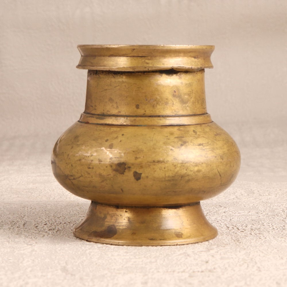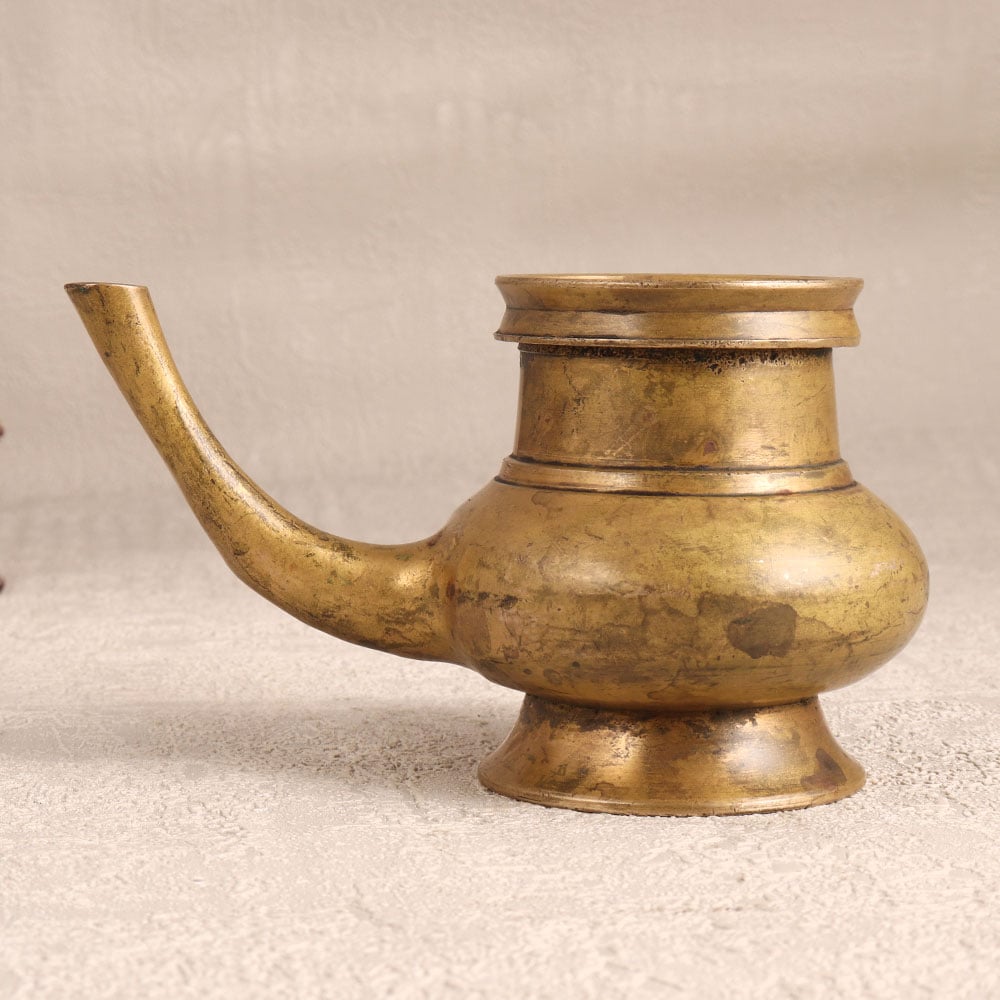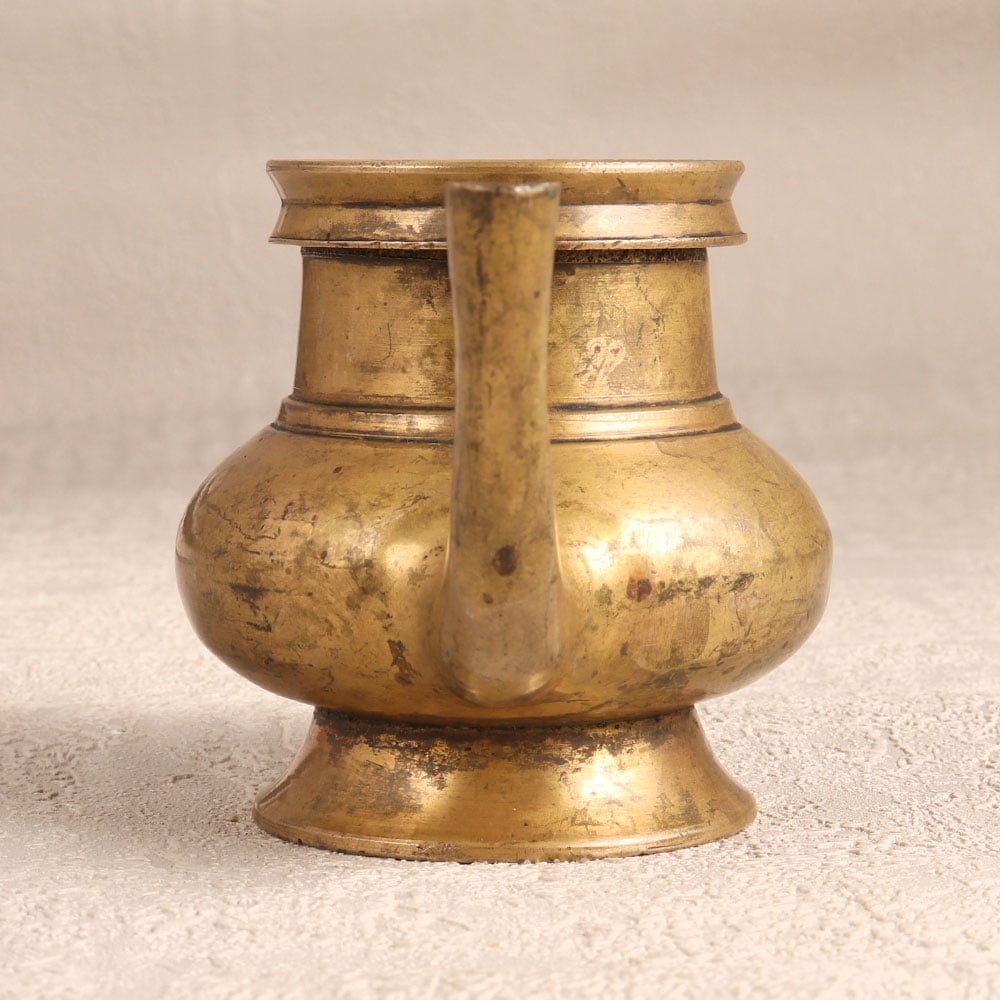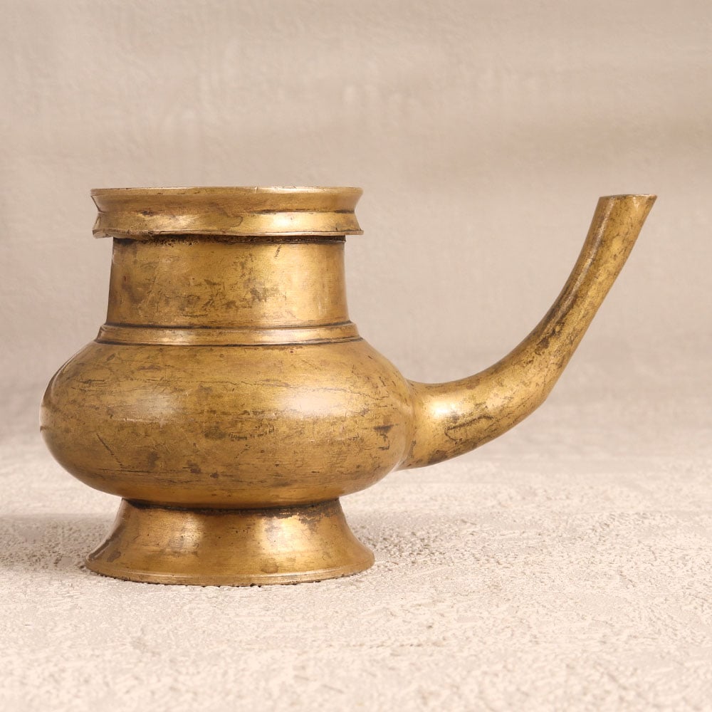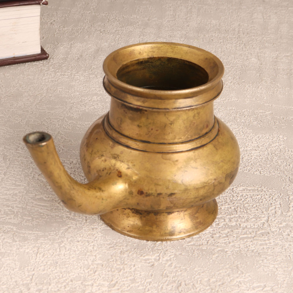 Immerse your spiritual space in the timeless charm of this Brass Sagar Pot with Spout that is a sacred vessel meticulously handcrafted by talented Indian artisans in the revered South Indian Art tradition. This holy water pot is designed for prayer rituals that boasts a captivating antique brown finish adding an aura of antiquity to any setting. Crafted from high-quality brass, its lustrous surface reflects the mastery of the artisans who infuse their expertise into every detail. Versatile and symbolic, the pot serves not only as a sacred vessel for holy water during prayers but also as an exquisite receptacle for flower decorations. Its elegant design makes it a captivating addition to homes, offices, restaurants, hotels, or cafes, seamlessly blending spirituality with aesthetic allure. This unique piece is not just a decorative item, it is a testament to tradition and spirituality, suitable for display or as a cherished gift for your loved ones during special, festive, or auspicious occasions.