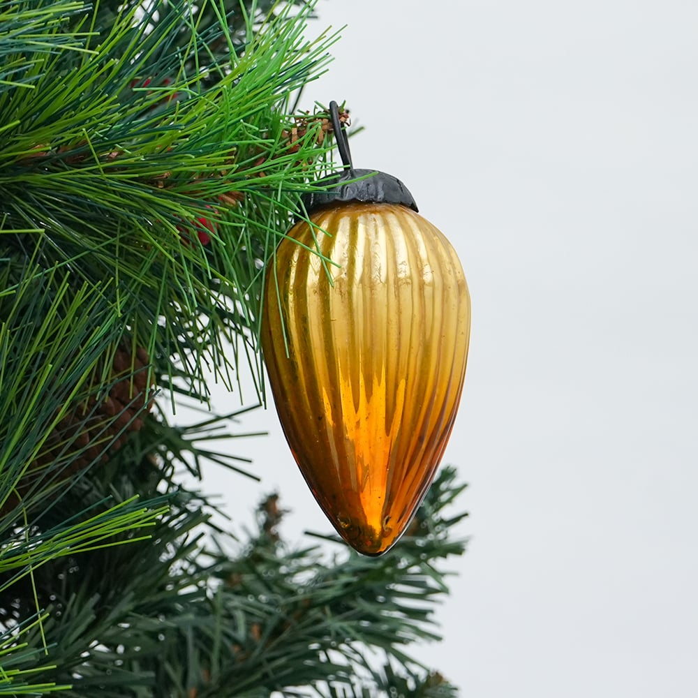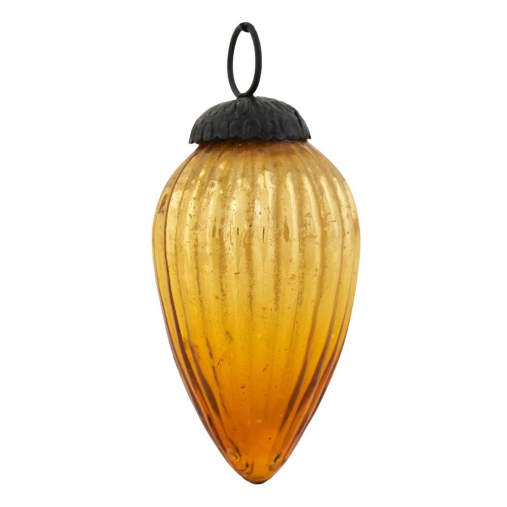 Vintage style Ribbed Amber Glass Christmas Ornament