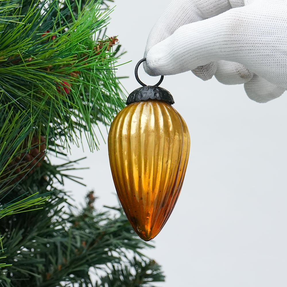 • Vintage style Ribbed Amber Glass Christmas Ornament
