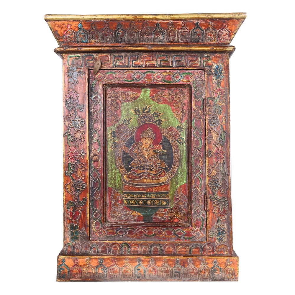 Bring home a touch of heritage with this exquisite handmade wooden box featuring intricate hand-painted details and traditional craftsmanship. The box showcases a beautifully painted deity in vibrant colors, symbolizing spiritual protection and timeless artistry. Hand-carved floral motifs and sacred geometric patterns adorn the borders, reflecting the rich legacy of Himalayan and Tibetan art traditions. Crafted from durable wood and finished with natural pigments, this antique-style wooden box is perfect for storing sacred items, jewelry, or as a unique home décor piece. Its distressed finish and detailed carvings make it a collector’s item that radiates cultural depth and vintage charm. Whether placed in a meditation space, living room, or gifted to an art enthusiast, this handcrafted wooden box adds a meaningful accent to any setting.