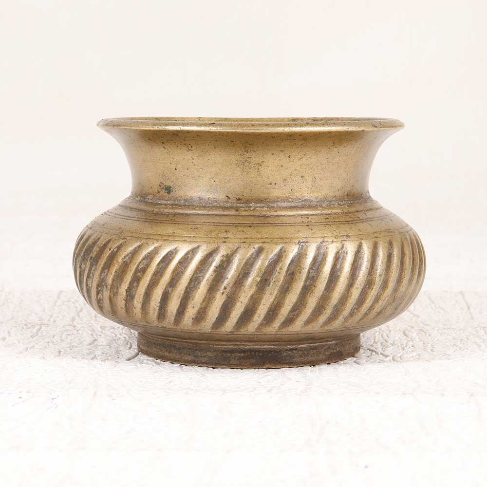 Transport yourself back to ancient times with this stunning vintage brass holy water pot. Crafted with intricate lines that add visual intrigue, this pot makes a cherished addition to any home. Let this brass pot take you on a journey through time. The intricate line detailing gives this pot a refined, artistic quality. Whether placed on your entryway table as a decorative accent or used in religious ceremonies to hold holy water, it lends an air of history and meaning to its surroundings. Give your home an antique, cultured feel, and display this pot with pride. For those who appreciate relics of times past, this vintage brass pot is a must-have. Its aged patina and handcrafted style provide a window into ancient civilizations. Use it to infuse tradition into modern life.