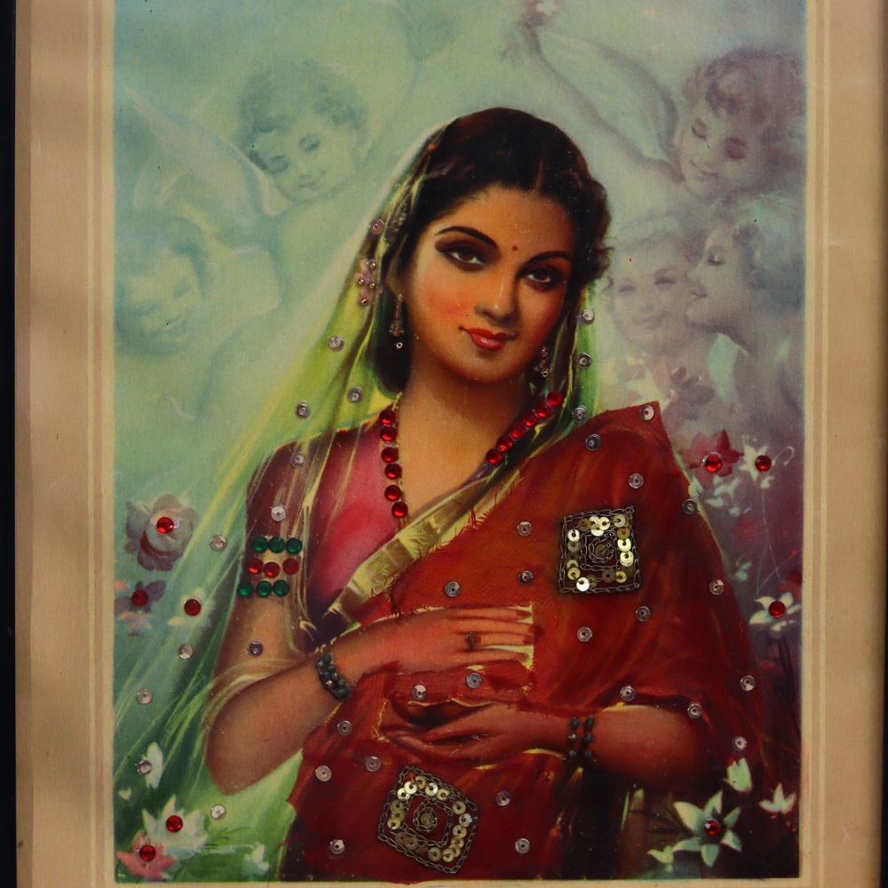 Bring the vibrant spirit of India into your home with this captivating portrait of a Vintage Traditional Indian Lady. Bursting with intricate details and rich, warm tones, this stunning piece will transport you to the heart of the subcontinent. This painting is a masterful blend of cultural tradition and artistic brilliance. The subject's poise and grace command attention, while the ornate cloth decor work surrounding her adds layers of visual intrigue. Whether you're drawn to the rich history and vibrant culture of India or simply appreciate fine art, this painting is a must-have addition to your home. Invite the beauty and wonder of the East into your living space. This Vintage Traditional Indian Lady will elevate your decor while sparking curiosity and wonder in all who lay eyes on it. Display this captivating artwork, and let it transport you to the colorful streets and marketplaces of India with each glance.