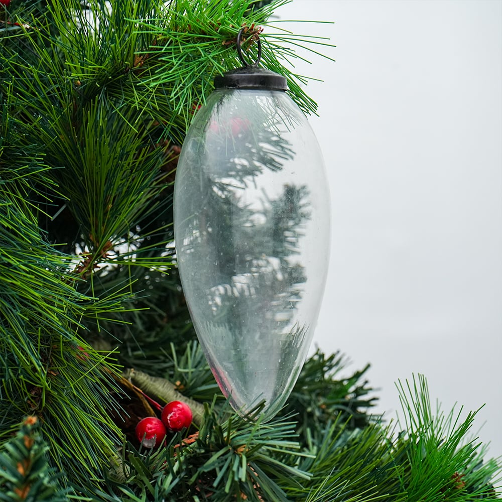 Vintage Transparent Hanging Ornament For Tree decor. Crafted from high-quality glass with a smooth glossy finish, this decorative bauble adds a classic and festive touch to Christmas trees, wreaths, and holiday displays.