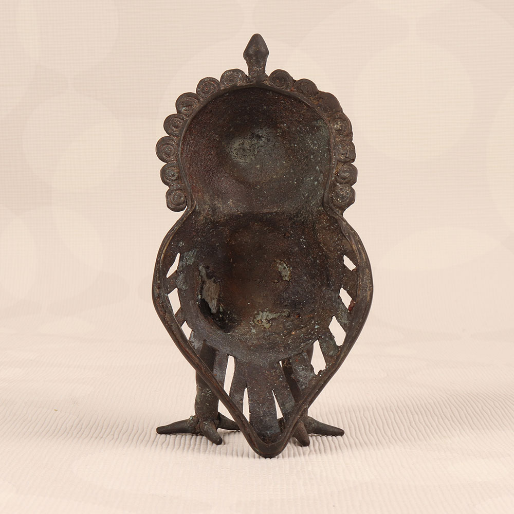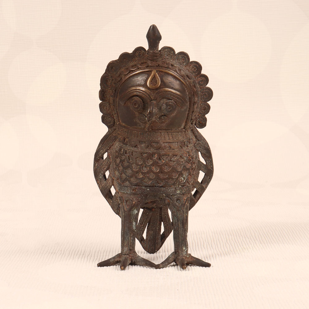 Behold the exquisite embodiment of divine grace of the Vintage Brass Owl Statue that is a mesmerizing masterpiece meticulously crafted by skilled Indian artisans in Tribal Art. This timeless creation pays homage to Goddess Lakshmi, as the majestic owl is her vahana (vehicle), symbolizing wisdom and prosperity. Handmade from high-quality brass, this statue boasts a dark finish that adds an air of mystery and antiquity. Its intricate detailing reflects the rich cultural heritage of Indian craftsmanship, making it a true testament to the artistry passed down through generations. Versatile in its appeal, the Vintage Brass Owl Statue becomes a captivating addition to any space, be it your home, office, restaurant, hotel, or cafe. Its presence elevates the ambiance with a touch of vintage charm, making it a perfect choice for those who appreciate unique and meaningful decor. This exceptional piece not only serves as a decorative item but also beckons to be part of a distinguished vintage collection. As a thoughtful gesture, it makes for an ideal gift, offering blessings of wisdom and prosperity to your loved ones on special, festive, or auspicious occasions.