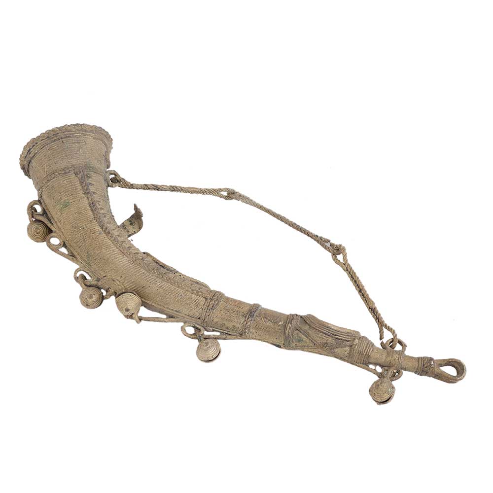 This brass Tribal art bugle has been recently restored to its original glory. Although the same still has signs of its original age, it only enhances the beauty and grace of the piece. You can opt to hang this or place it on the table to act as a brilliant showpiece and garner praises from all. If you have been searching for an amazing or unique gift for a loved one ata wedding or housewarming, this is the right product for your needs.