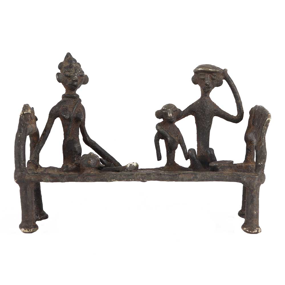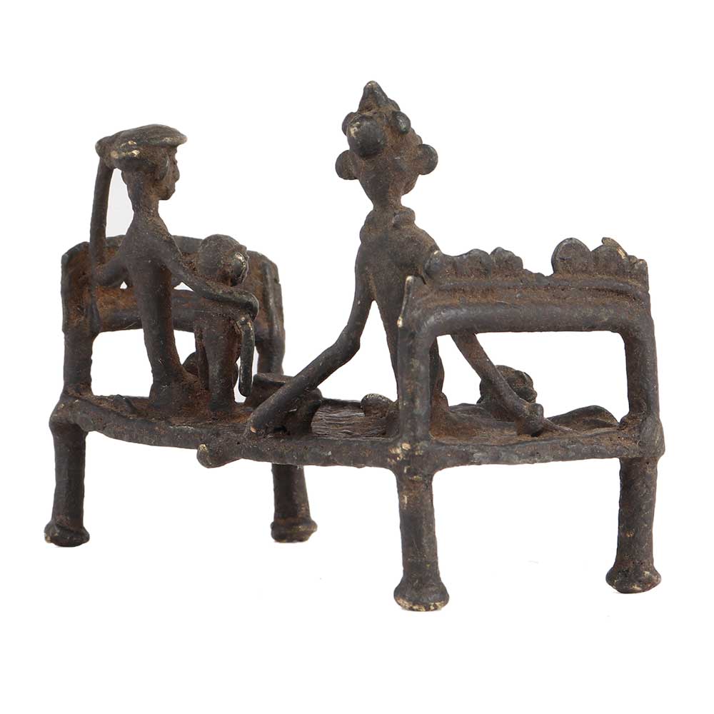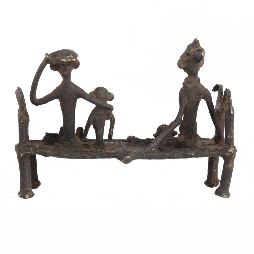 The rural handicraft in the form of this Vintage tribal bed with 3 figure brings alive the memory of ancient India. The same depicts a village scene with figurines sharing a heart-to-heart conversation. This Vintage tribal bed with 3 figure brings back stunning memories and sweet reminiscence of the grandmother's house and summer vacations. Its stunning artwork and intricate details will surely capture the heart of all. Thus it makes a perfect purchase for your home or office decor plans.