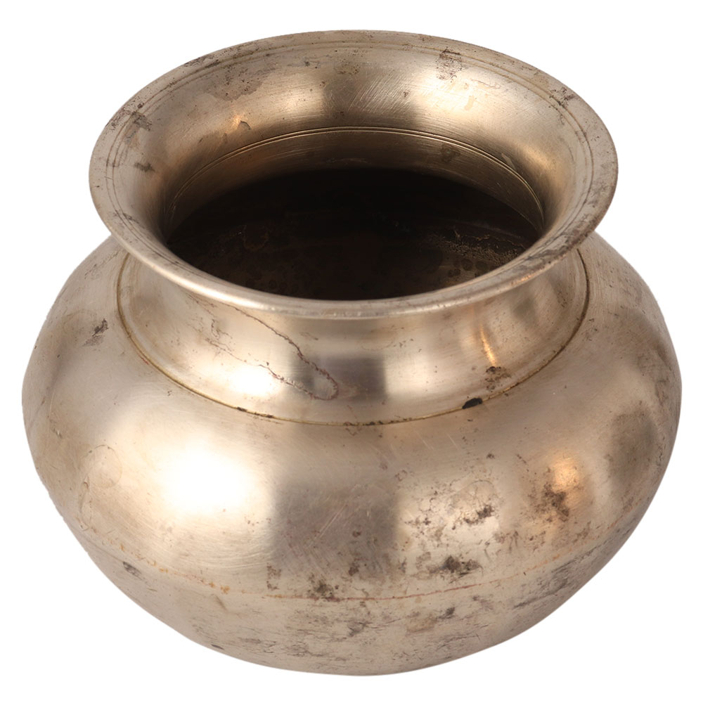 This vintage Gangajal water pot is used in Hindu rituals such as weddings, Pitra Pooja (a prayer in memory of paternal ancestors), corporate ceremonies, inauguration of a new office, shop or house. It is made of white metal alloy and has a sturdy look. Use it for Diwali decoration or give it as a gift for Christmas or house warming.