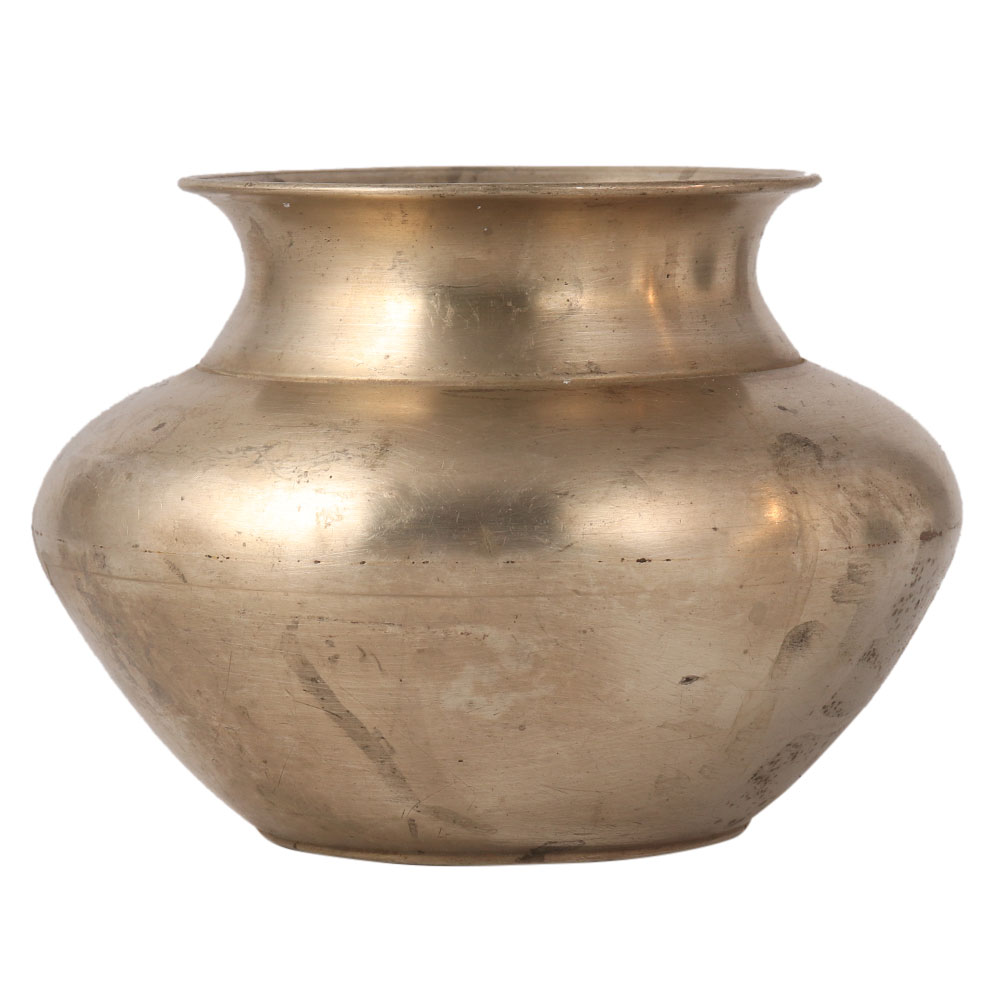 The plain, used Kalash water pot has a shiny appearance. It is carved from a white metal alloy and has a flat bottom to stay on the surface. It can be used to decorate home and office. Place it as a flower pot on tables or shelves in your restaurant or bar to attract your customers.