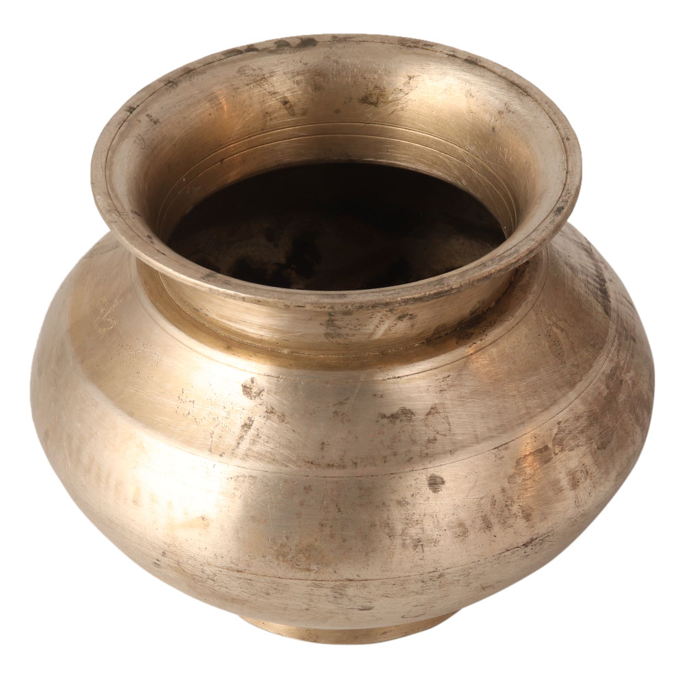 This vintage used water pot made of a white metal alloy has two embossed lines on the sides. It is believed that keeping holy water in the pot will spread positive energy in the house. It is an ideal gift for your spiritual friend.