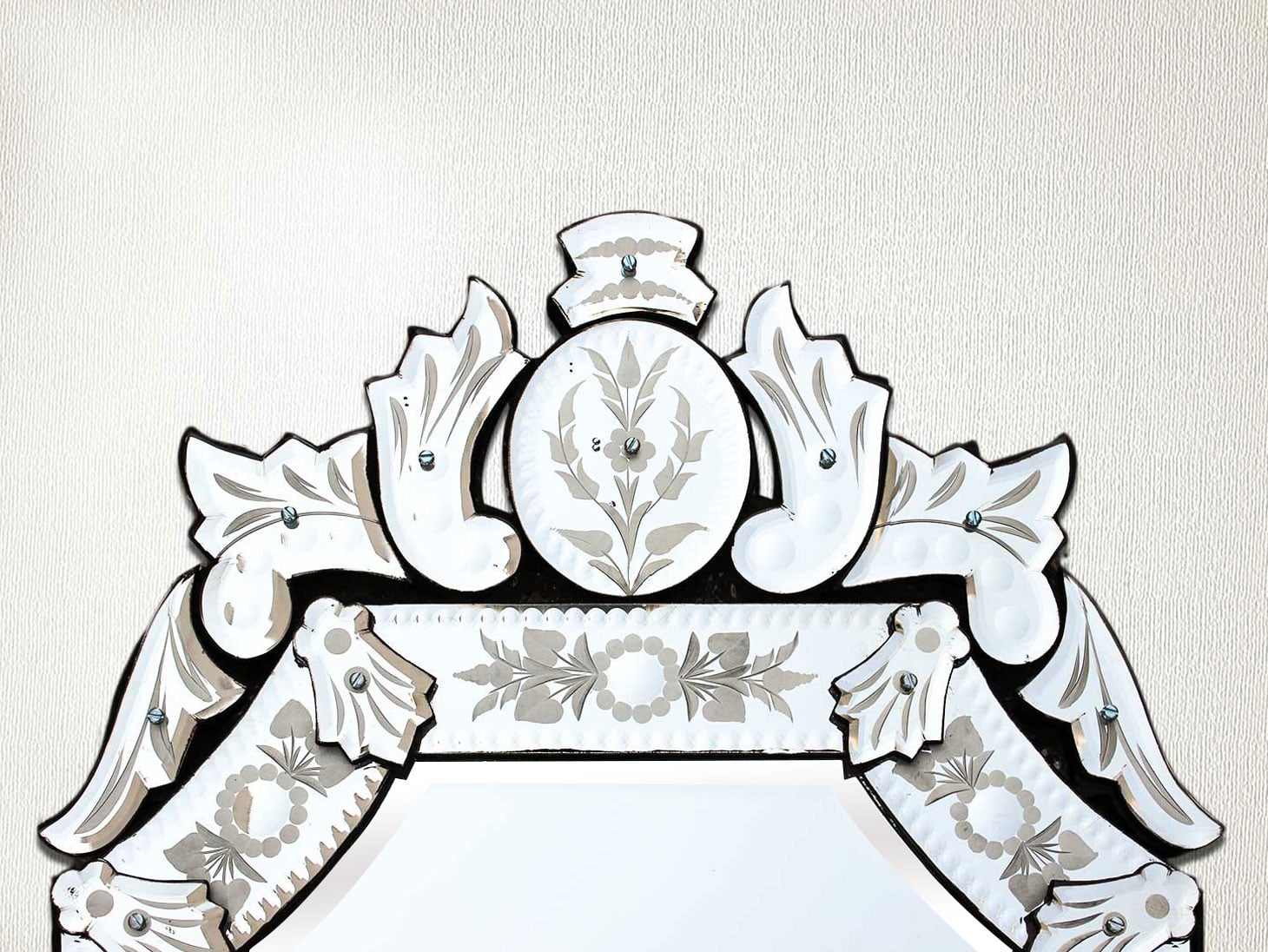 Vintage Venetian Mirror-23.75 inches X 14 inches.A simple way to incorporate an elegant look into any room is the addition of Venetian mirrors these treasured pieces reflect light and serve as an artistic focal point transforming a room into a glamorous environment with a bit of old world elegance.