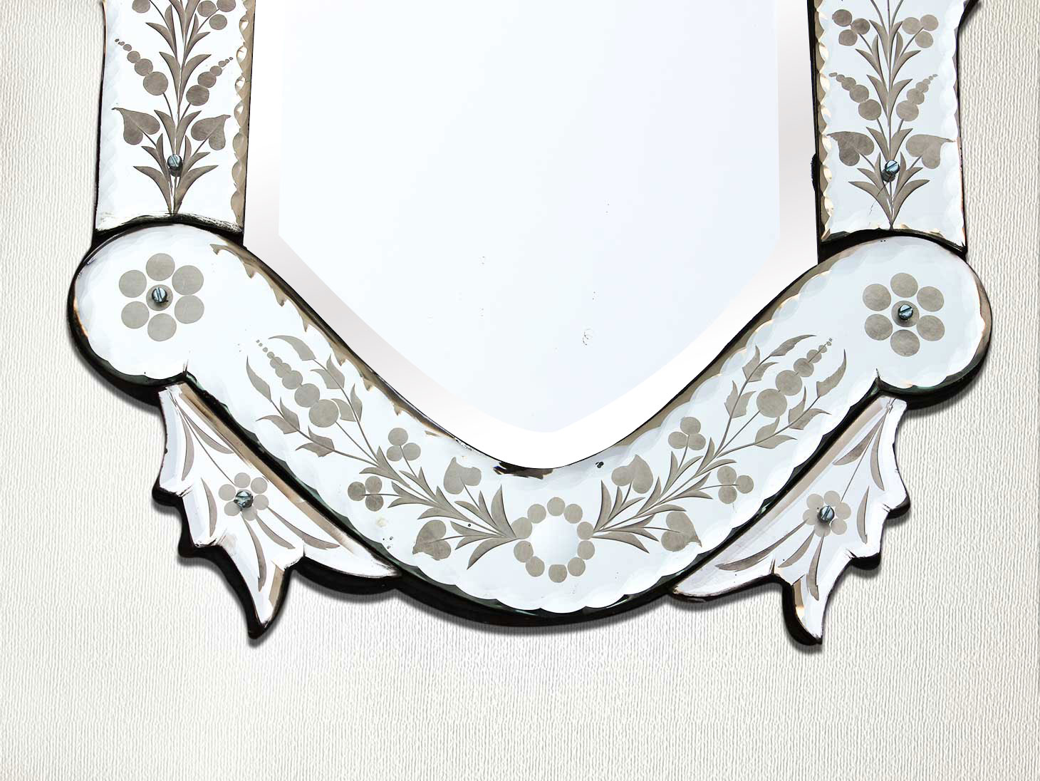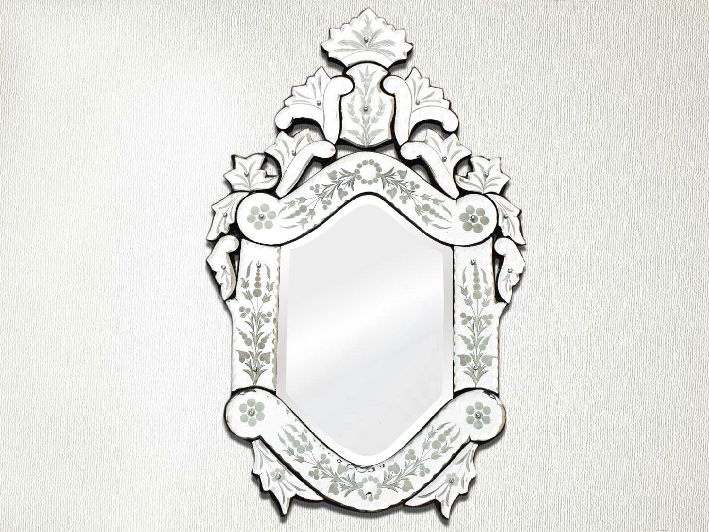 Vintage Venetian Mirror-24.5 inches X 15 inches.A simple way to incorporate an elegant look into any room is the addition of Venetian mirrors these treasured pieces reflect light and serve as an artistic focal point transforming a room into a glamorous environment with a bit of old world elegance.