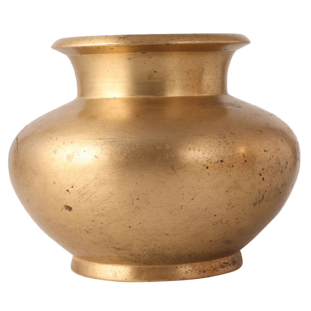 Vintage brass pot is made of white bell metal alloy, which gives it a sturdy look. It is a good choice for collectors. It can be used for decoration at home, offices, etc.
