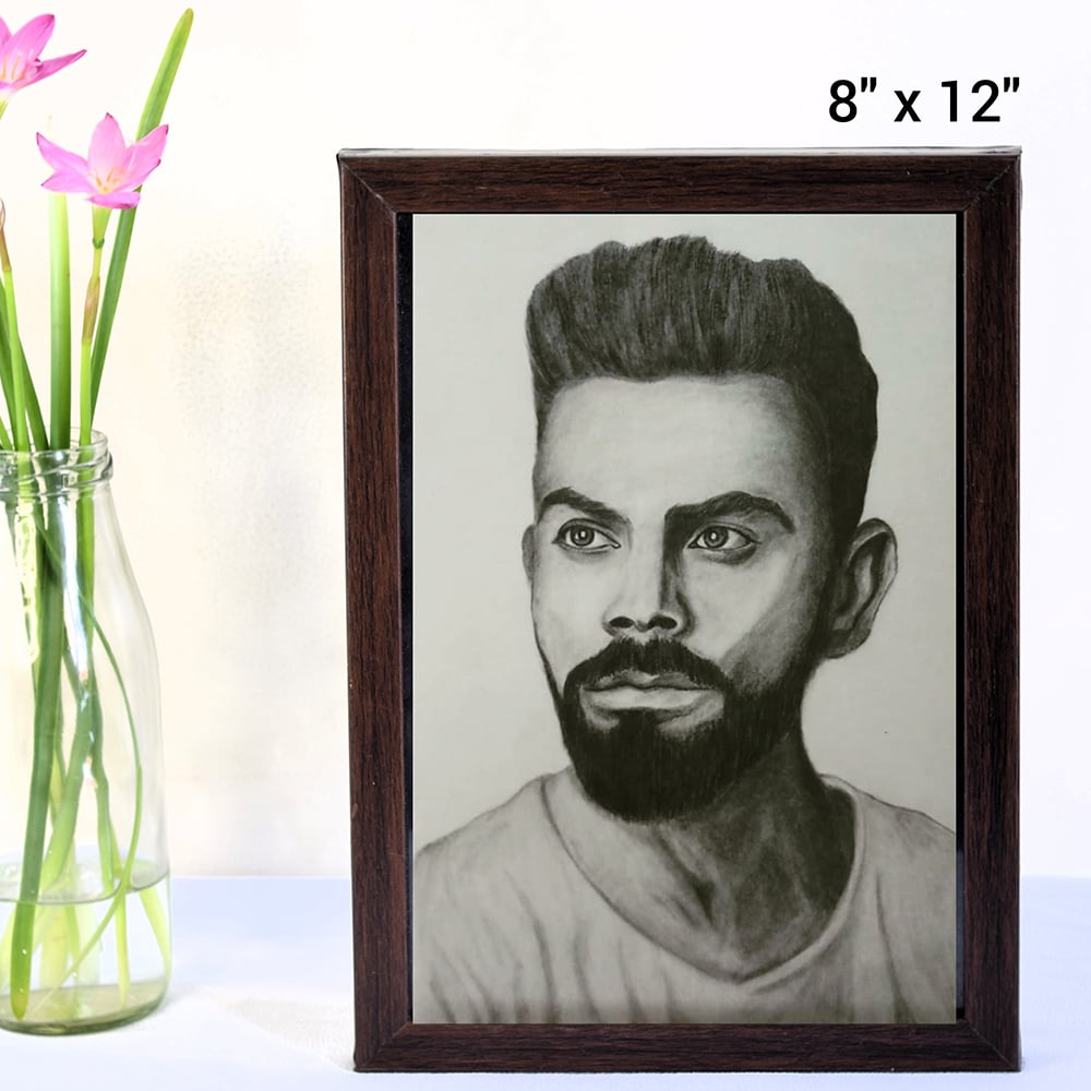 • Virat Kohli Realistic Pencil Portrait Art on Paper by Artist Dimpana | 8 x 12 Inches