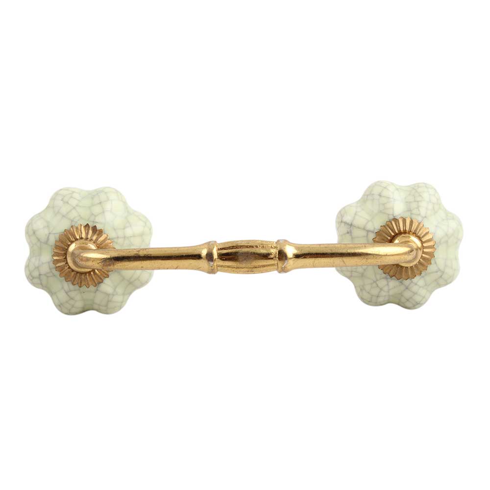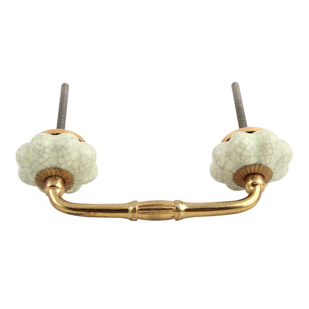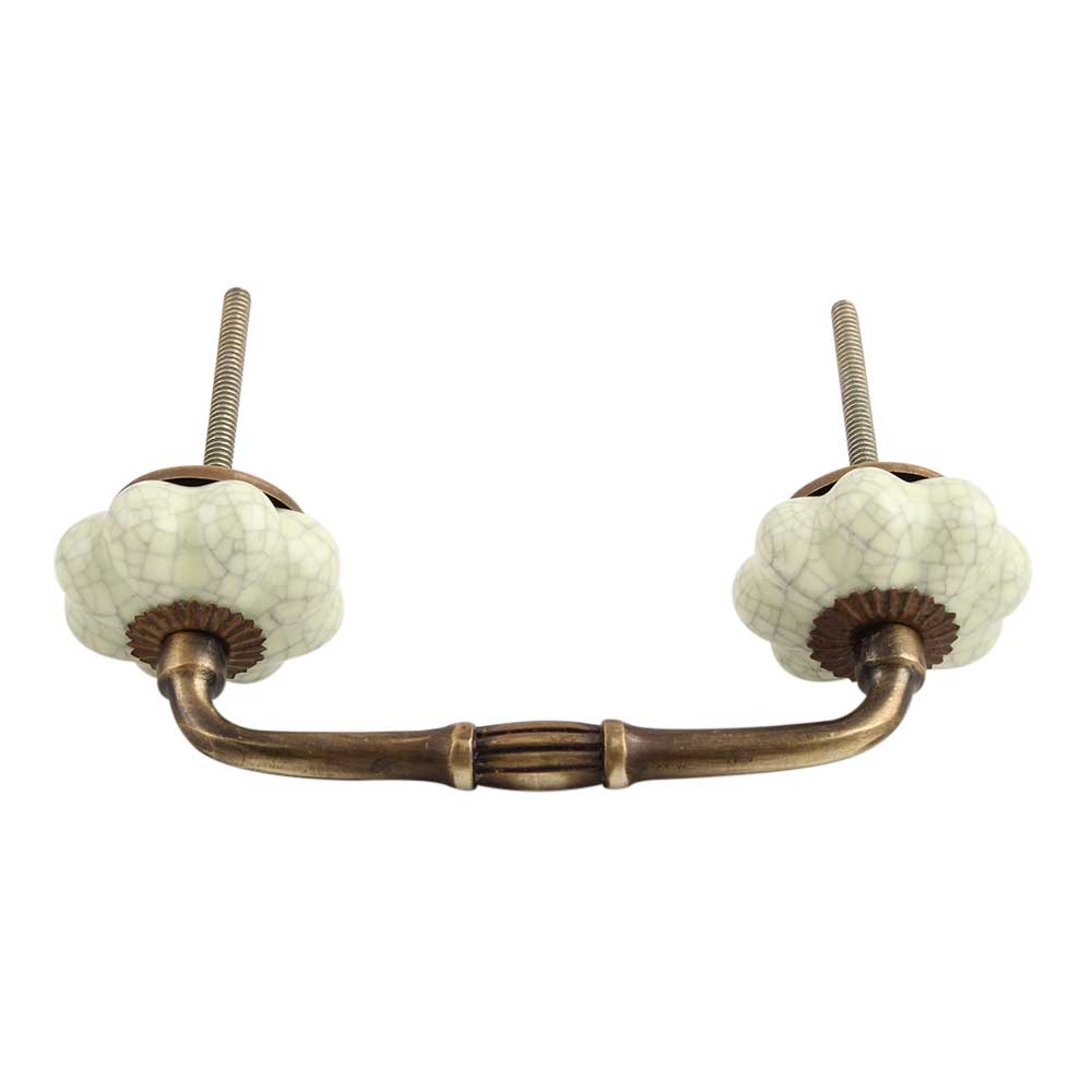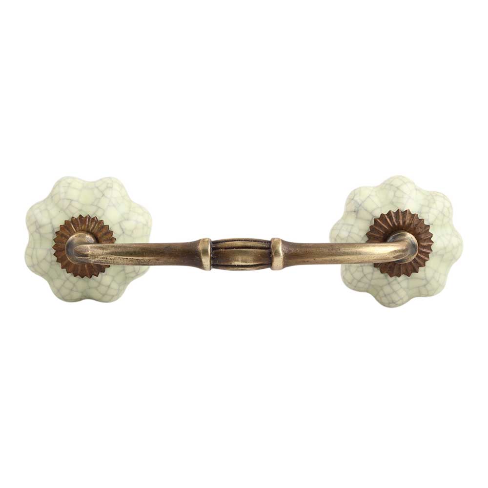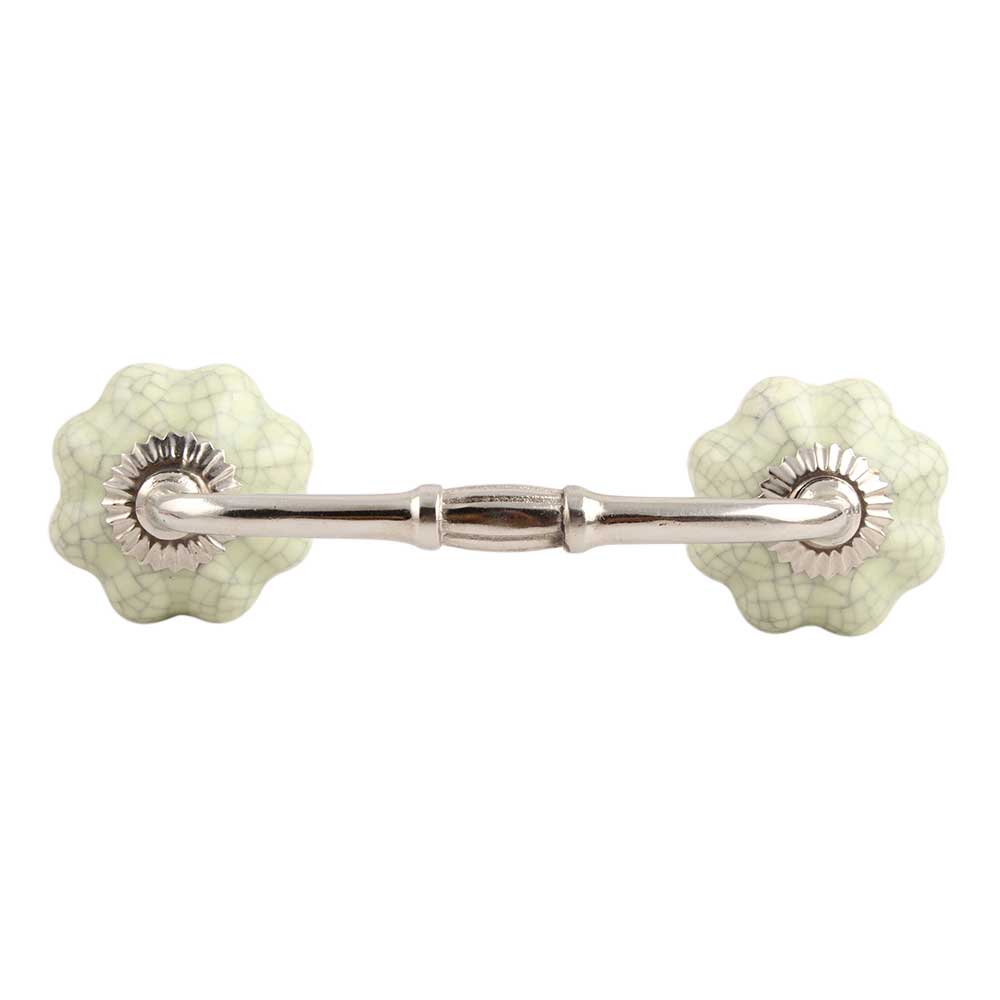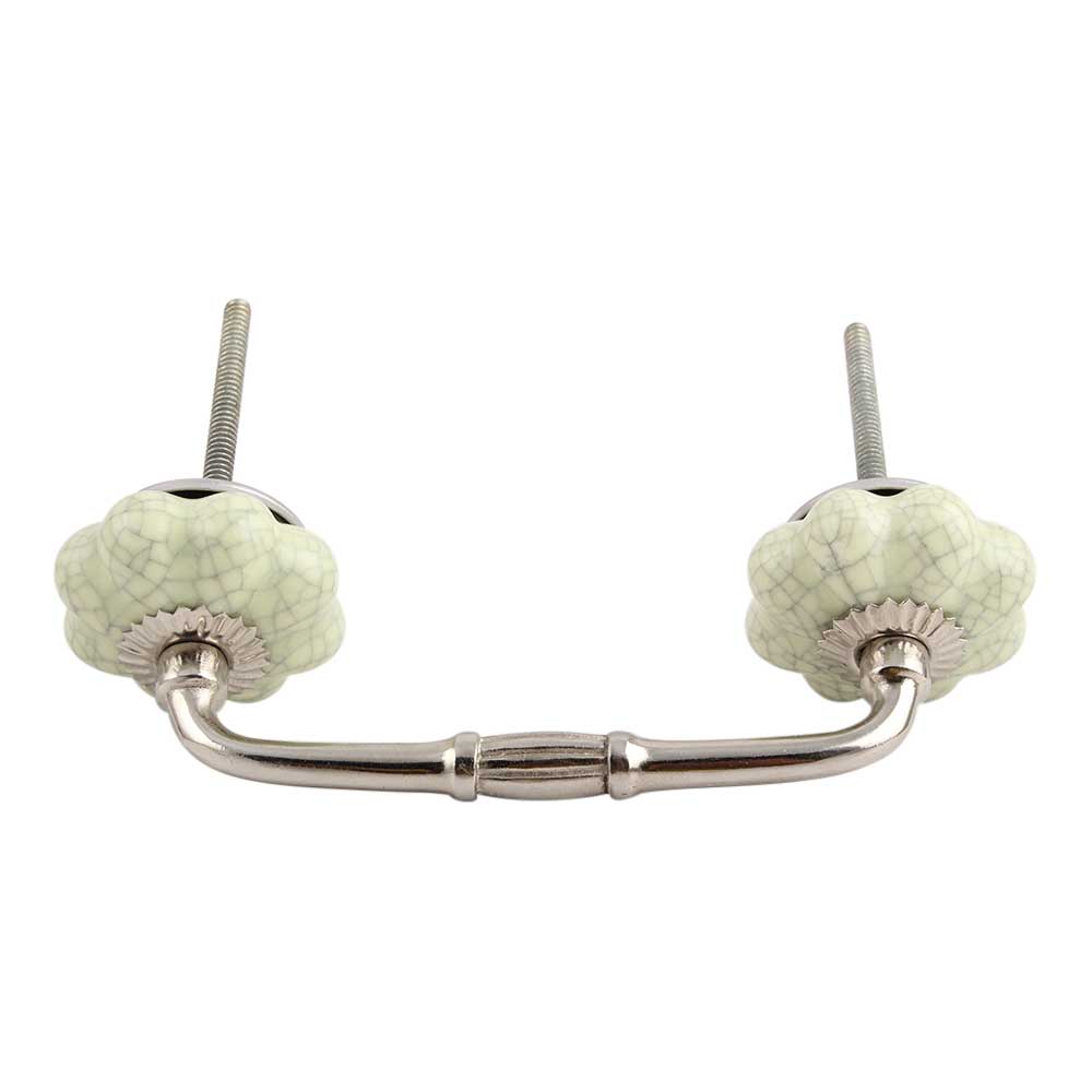 washed Green Crackle Ceramic Melon Bridge Handle. Ideal for Drawer, Dresser, Cabinet, Wardrobe, Cupboard and Almirah.