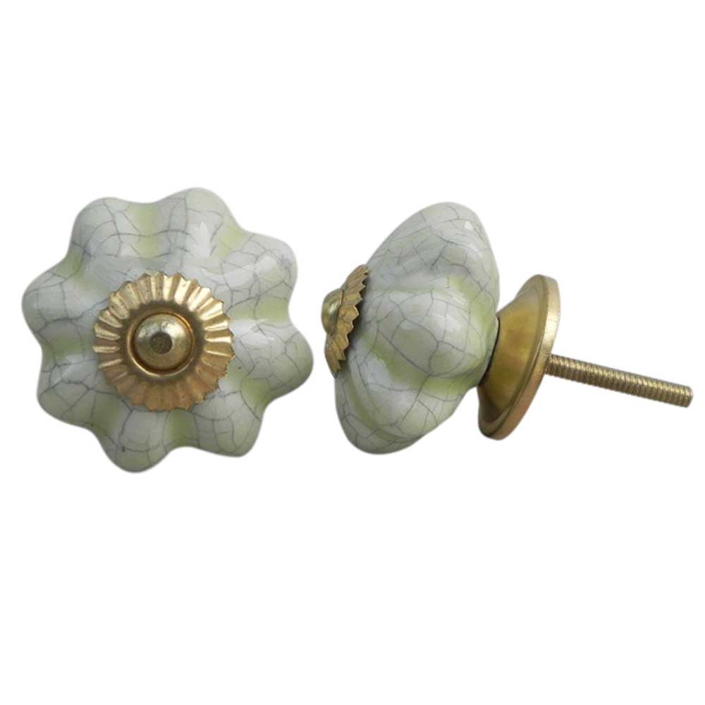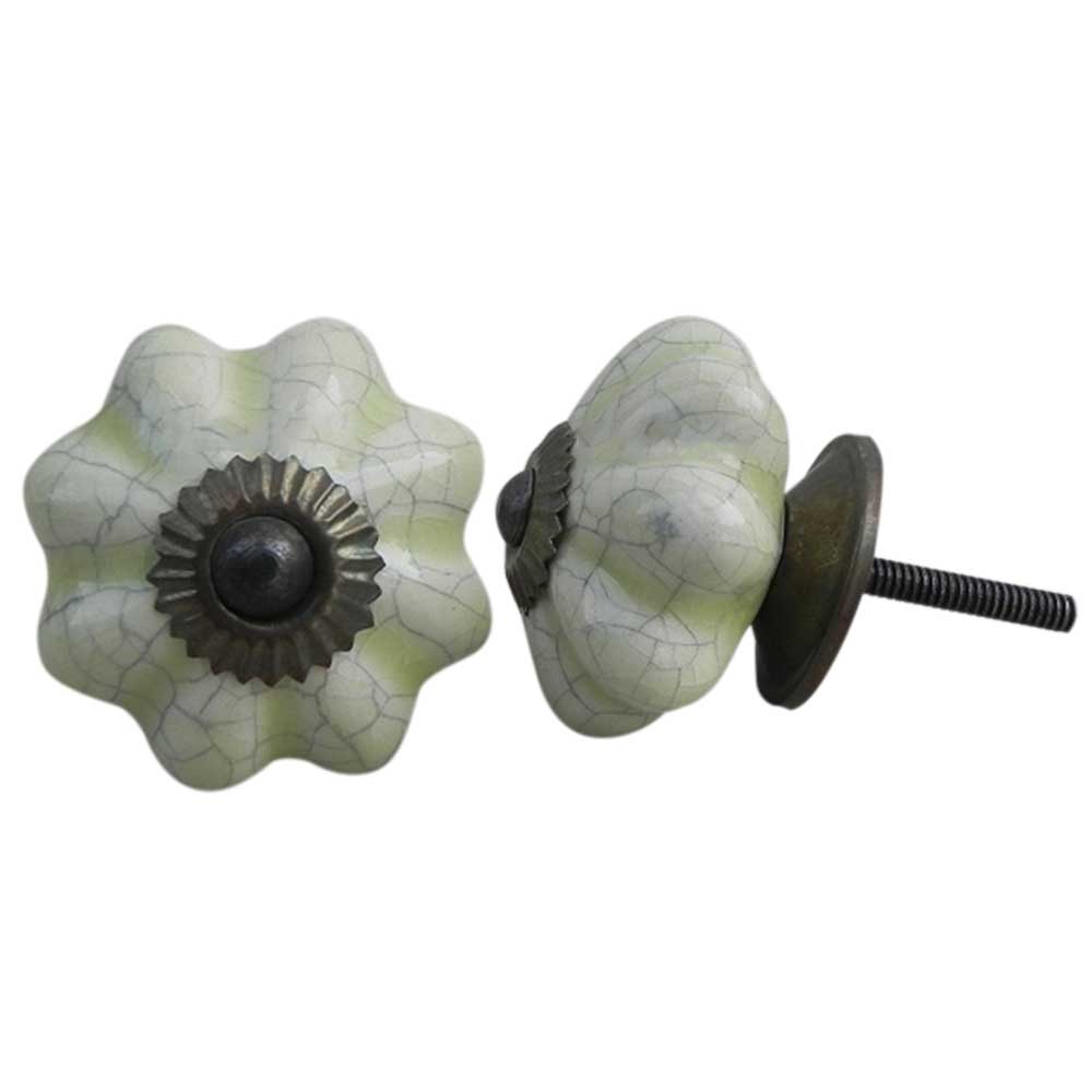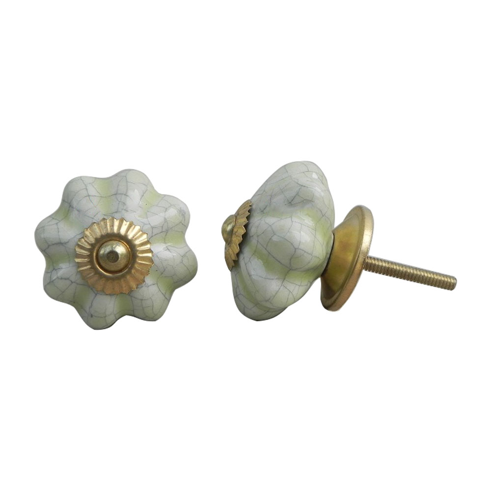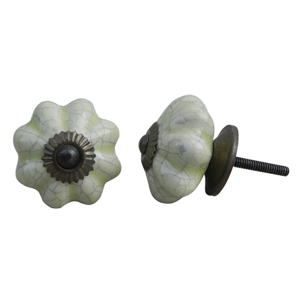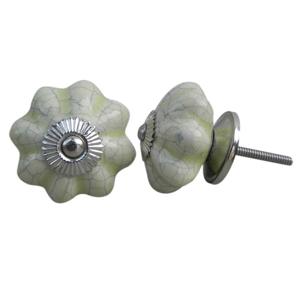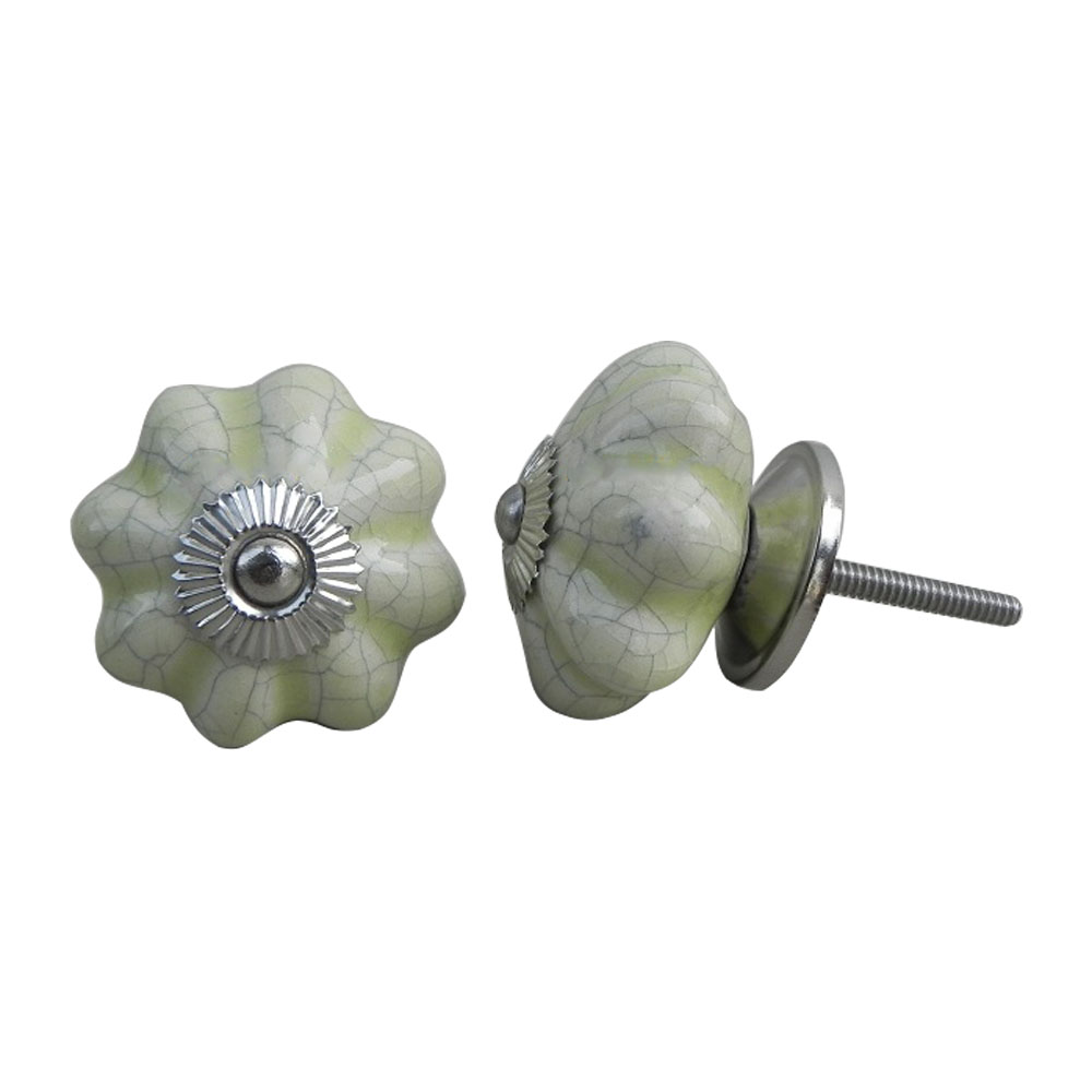 Whether you're remodeling a room or updating older furniture, the Washed Green Crackle Ceramic Melon Cabinet Knob serves as the perfect accent. Its eye-catching design elevates ordinary furniture into extraordinary pieces with a soft, inviting color that works well with a variety of color schemes.