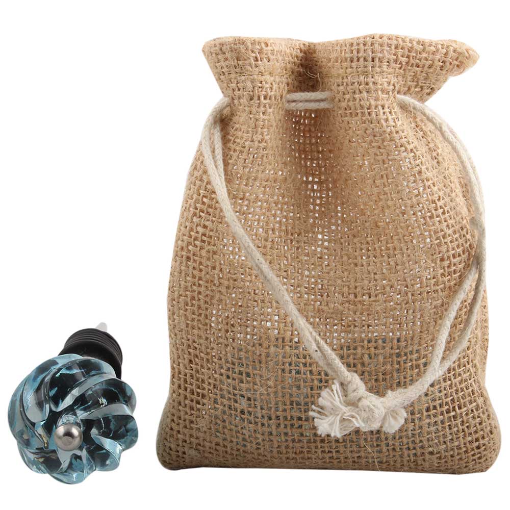 Water Interior Glass Cut Wine Stopper.zinc alloy wine bottle stopper with attractive Jute Bag Packaging.