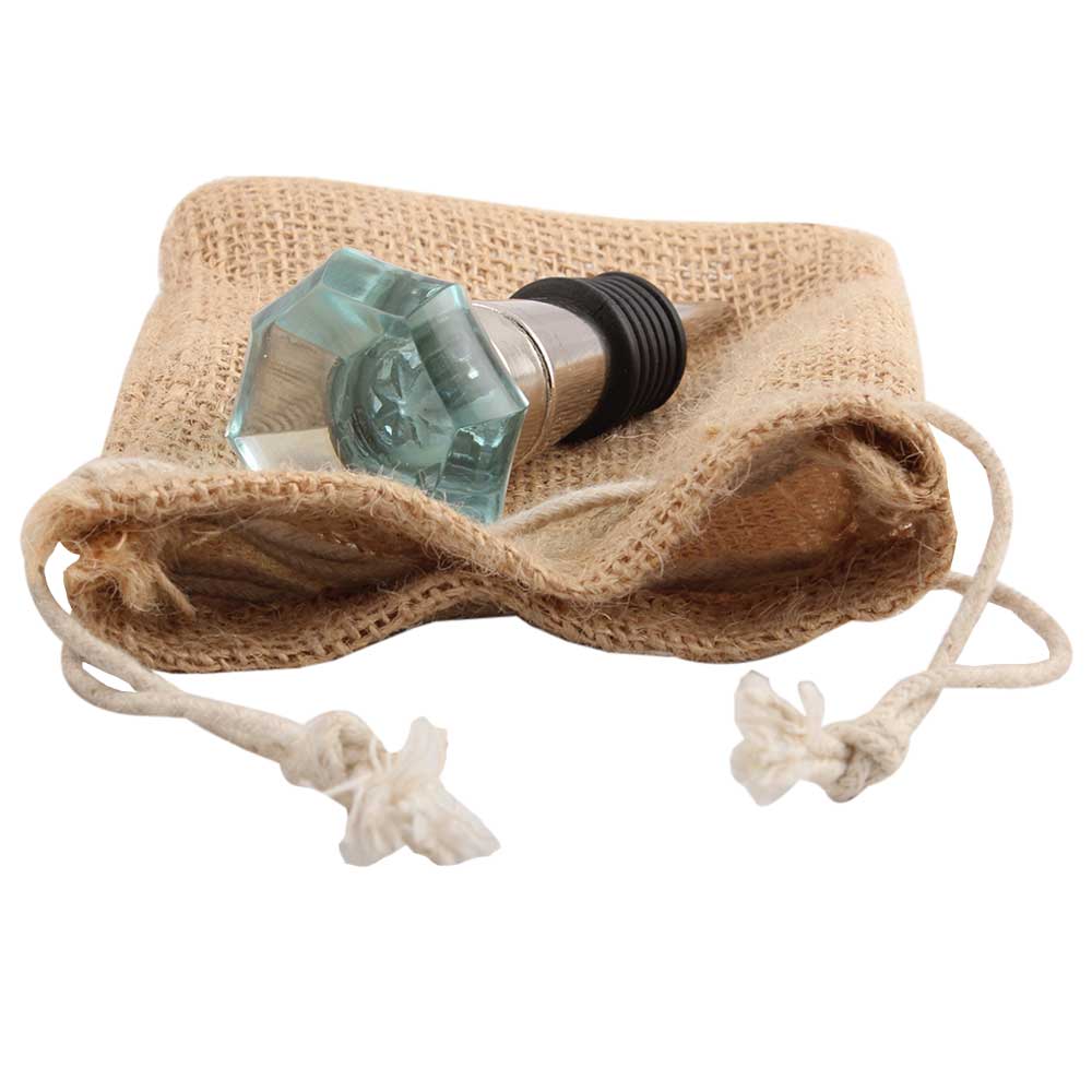 Water Octagon Shape Glass Wine Stopper.zinc alloy wine bottle stopper with attractive Jute Bag Packaging.