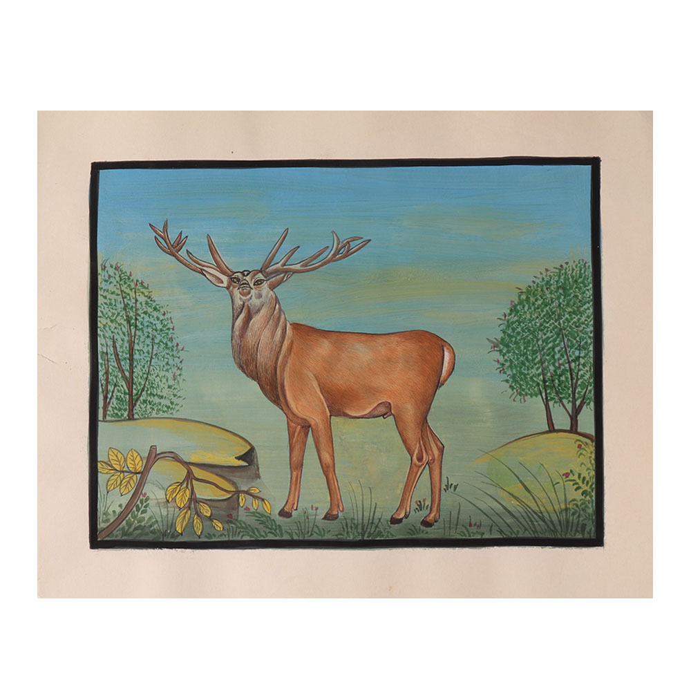 You want to use a lovely painting of Deer in forest on a grayish blue backdrop that is encased in a fibre frame to beautify your home. Standing on some grass, the deer appears at ease and would bring a sense of peace to the home. You could give this artwork as a present to someone who like wildlife painting.