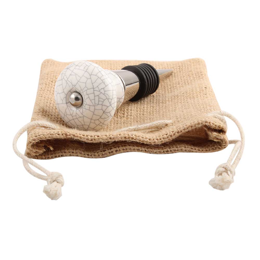 White And Black Crackle Ceramic Wine Stopper.zinc alloy wine bottle stopper with attractive Jute Bag Packaging.