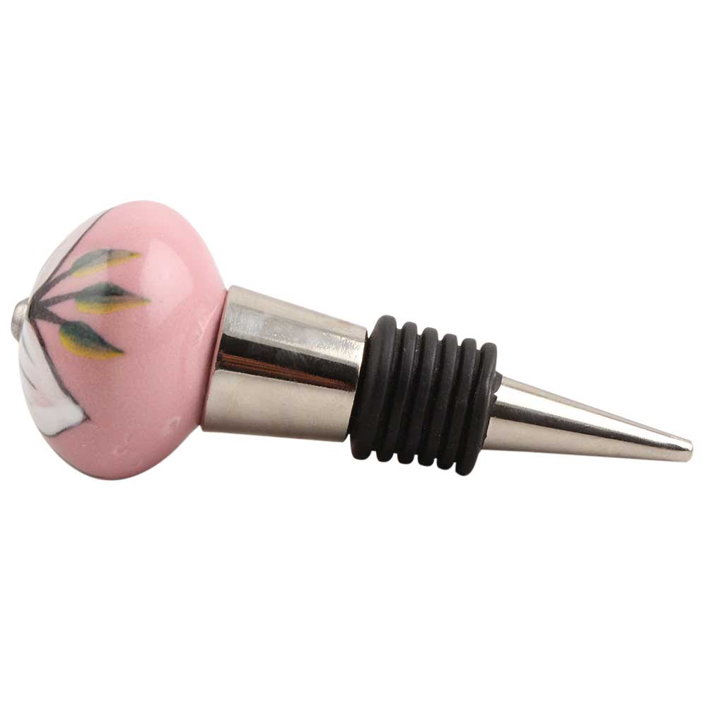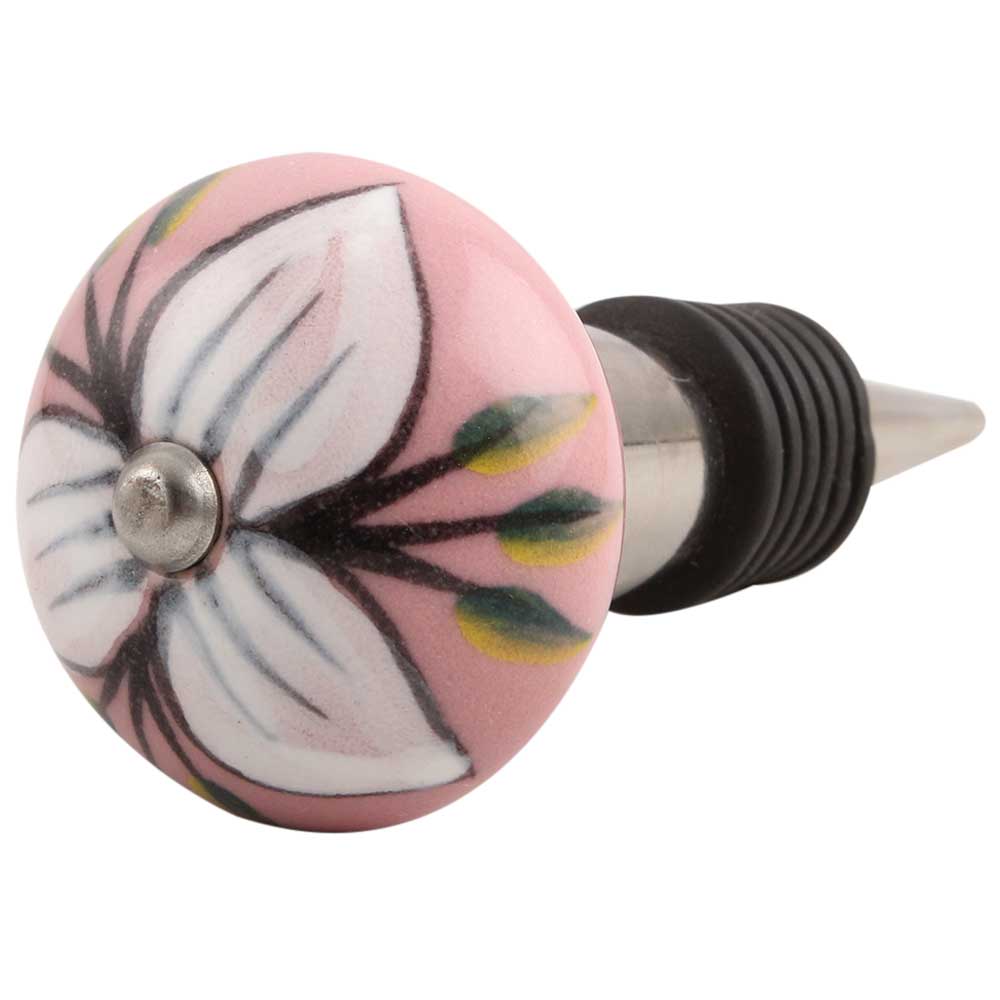 White And Green Flower Leaf Ceramic Wine Stopper