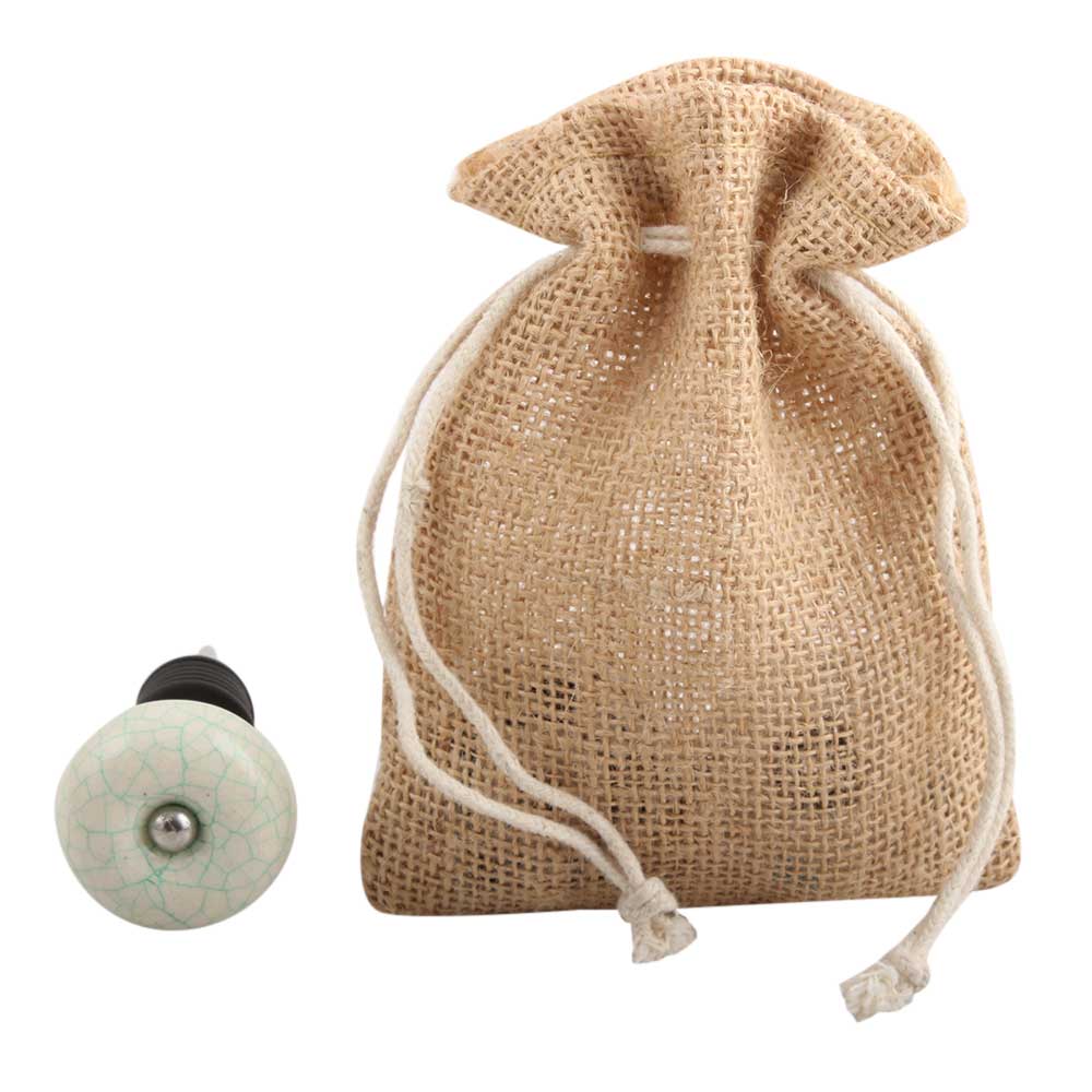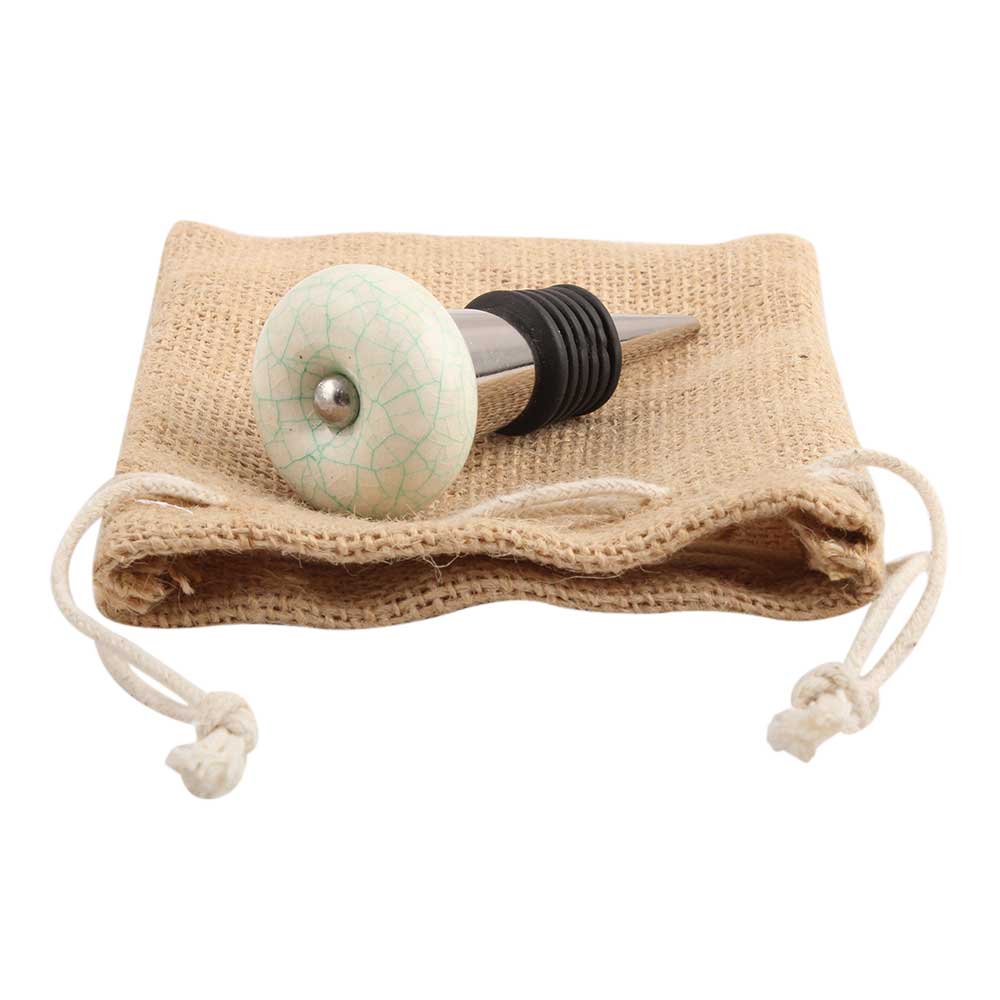 White And GreenCrackle Ceramic Wine Stopper.zinc alloy wine bottle stopper with attractive Jute Bag Packaging.