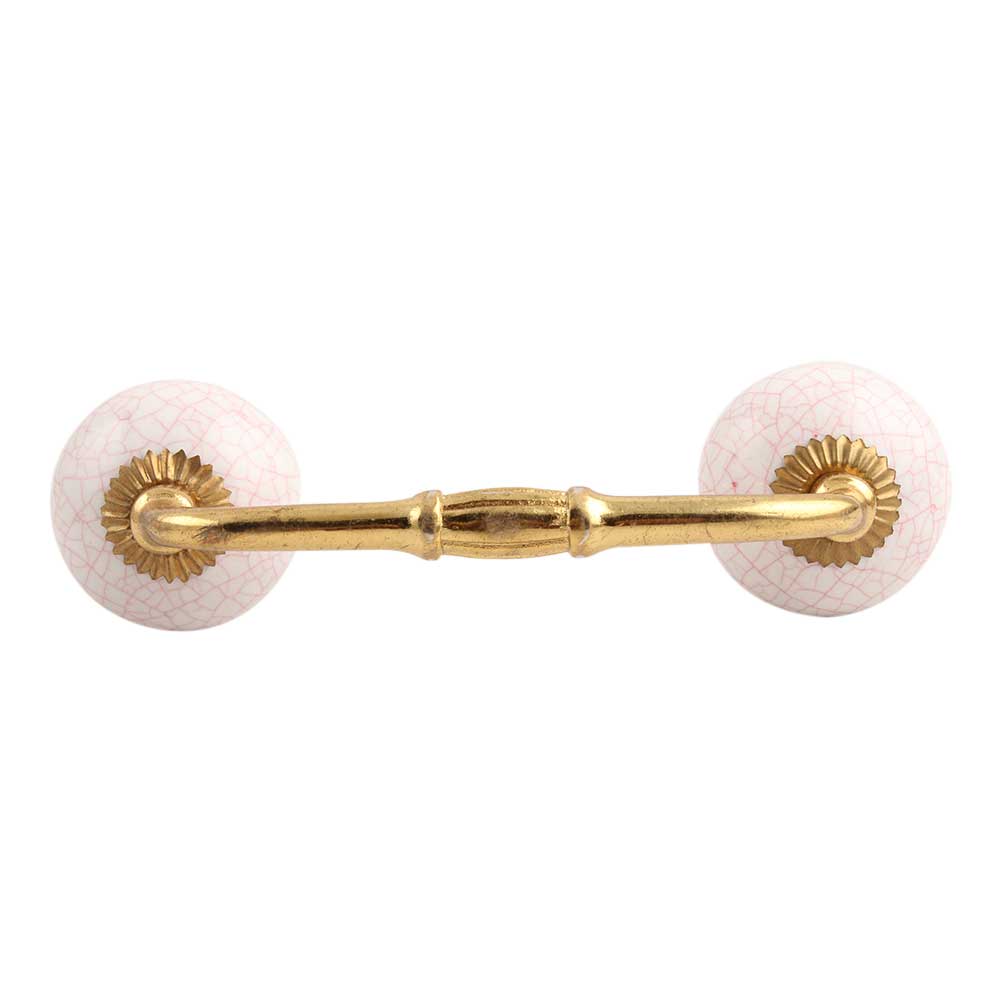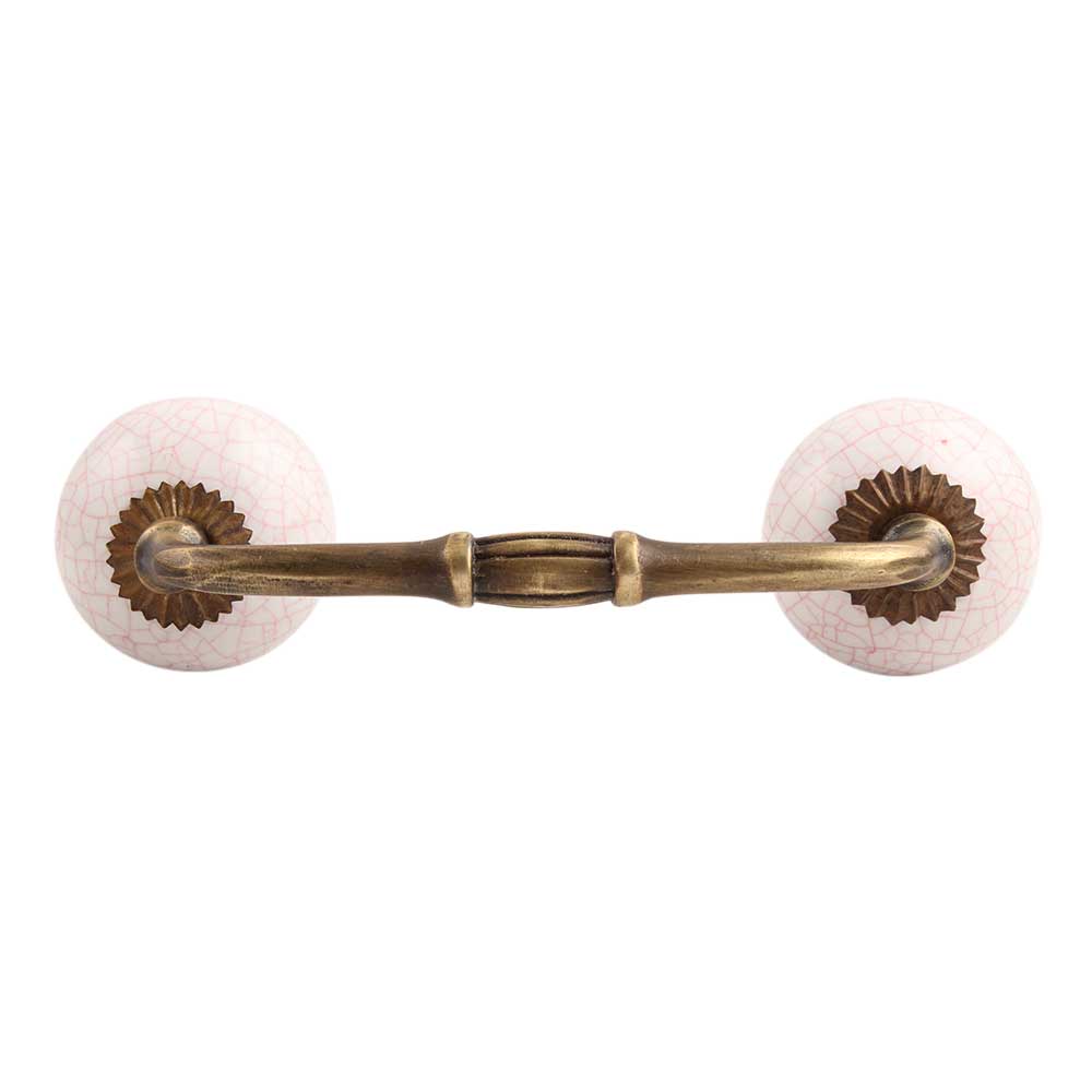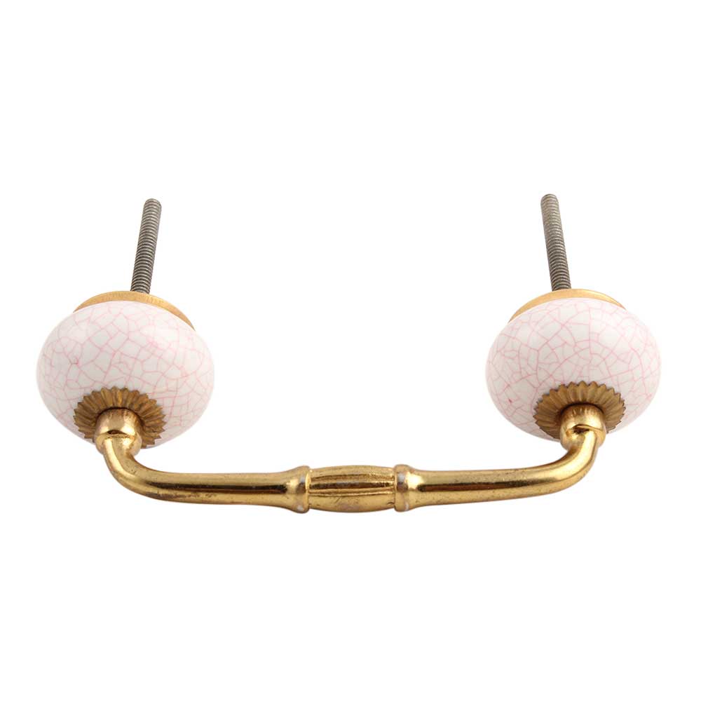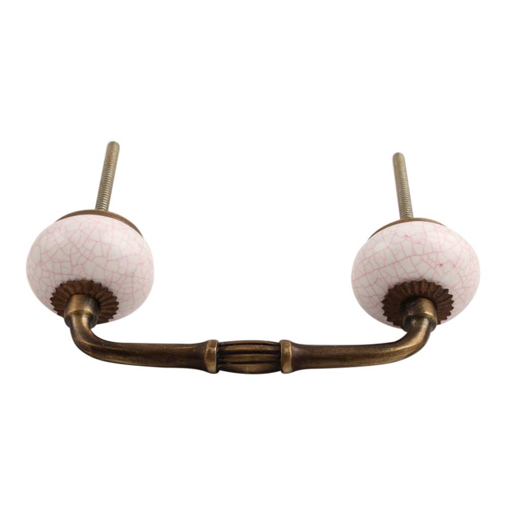 White and Pink Crackle Ceramic Bridge Handle. Ideal for Drawer, Dresser, Cabinet, Wardrobe, Cupboard and Almirah.