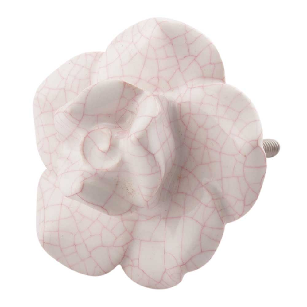 White And Pink Crackle Rose Flower Ceramic Knobs