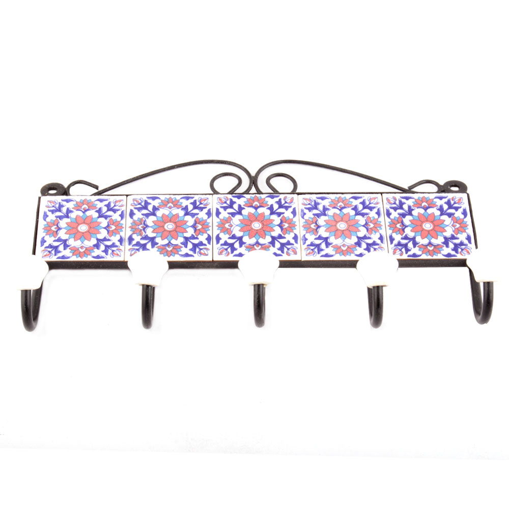 White And Red Sun Flower Tiles Hooks. When Put on Wall or Cabinet it is an Art in itself. The Metal Part of this Hook is Black Powder Coated.