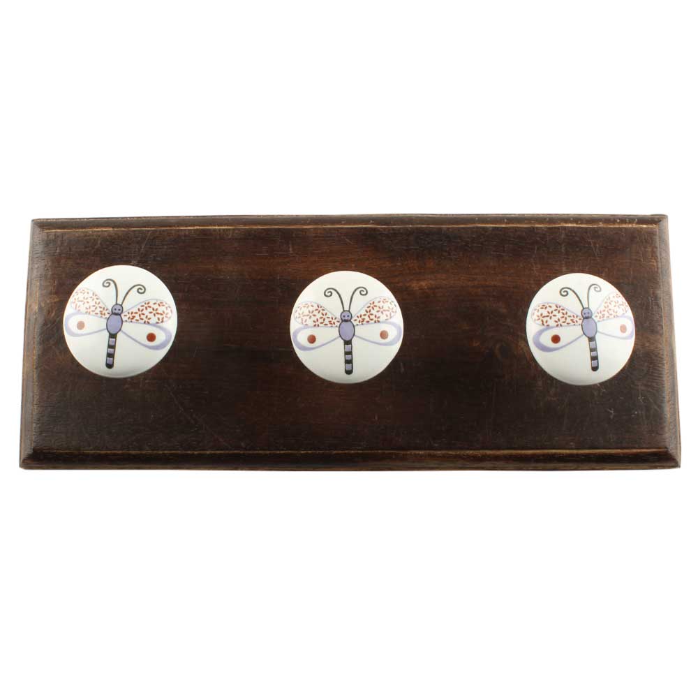 White Base Bee Ceramic Flat Wooden Hook. A Perfect Complement to the Soft Tone of the Wood are these White Traditional Hat and Coat Hook Made of Genuine Porcelain and Brass. It can be used to Hang Jewelry, Leashes, Towels, Scarves, Light Weight Sweaters, Caps etc.