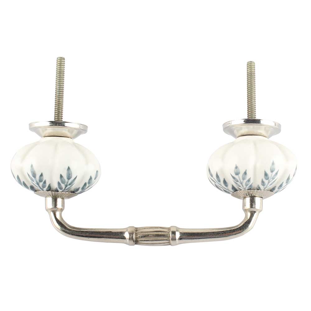 White Base Grey Leaf Ceramic Melon Bridge Handle. Ideal for Drawer, Dresser, Cabinet, Wardrobe, Cupboard and Almirah etc.