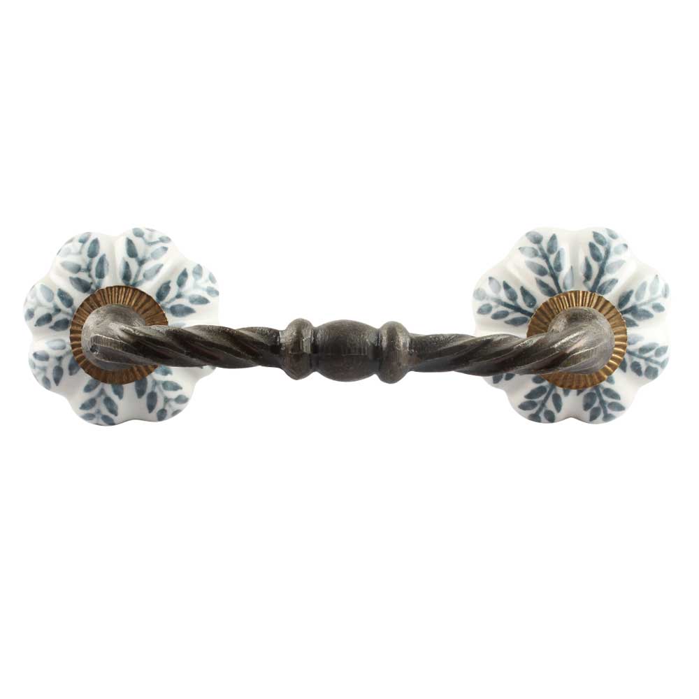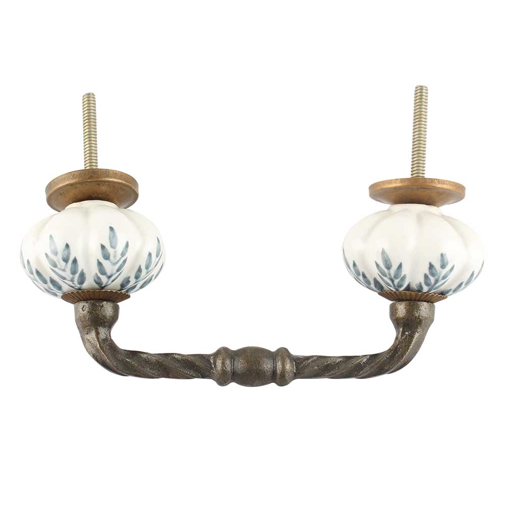 White Base Grey Leaf Ceramic Melon Cut Bridge Handle