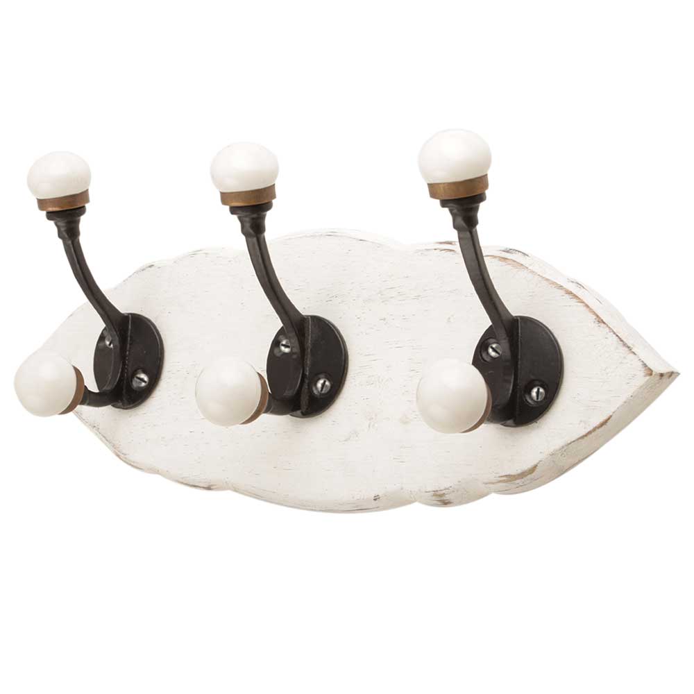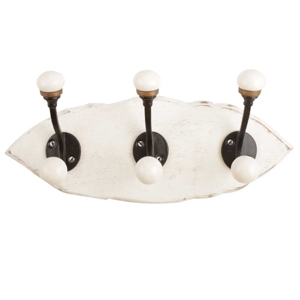 White Black Double Loop Ceramic Iron Wooden Hooks. A Perfect Complement to the Soft Tone of the Wood are these White Traditional Hat & Coat Hook Made of Genuine Porcelain and Brass. It can be use to Hang Jewellery, Leashes, Towels, Scarves, Light Weight Sweaters, Caps Etc.