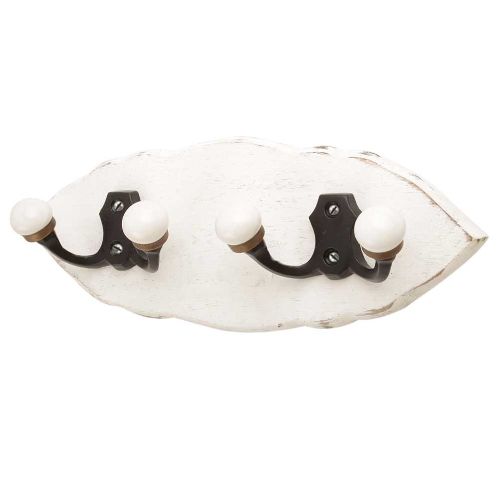 White Black Double Loop Ceramic Iron Wooden Hooks. A Perfect Complement to the Soft Tone of the Wood are these White Traditional Hat & Coat Hook Made of Genuine Porcelain and Brass. It can be use to Hang Jewellery, Leashes, Towels, Scarves, Light Weight Sweaters, Caps Etc.