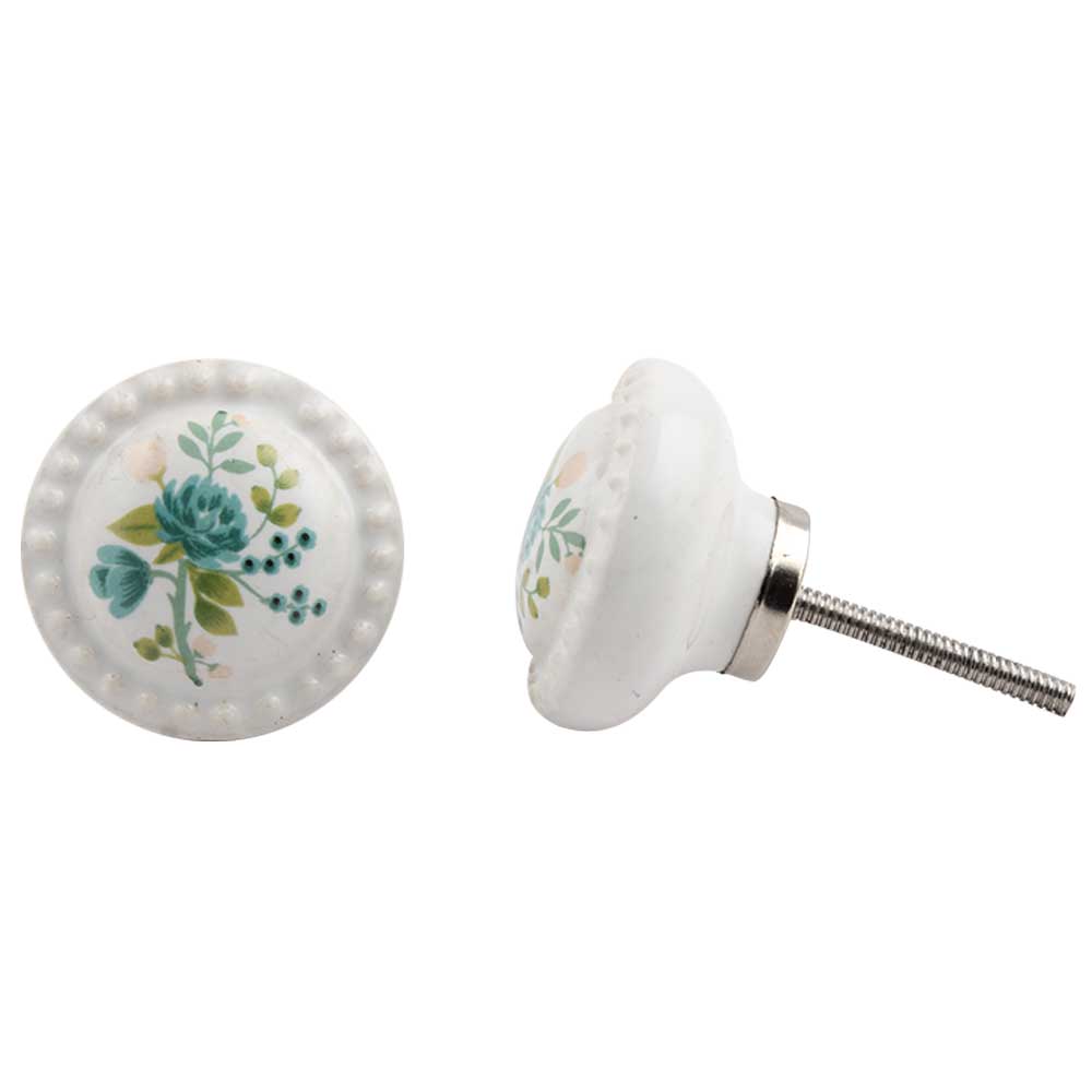 White Blue Flower Knob