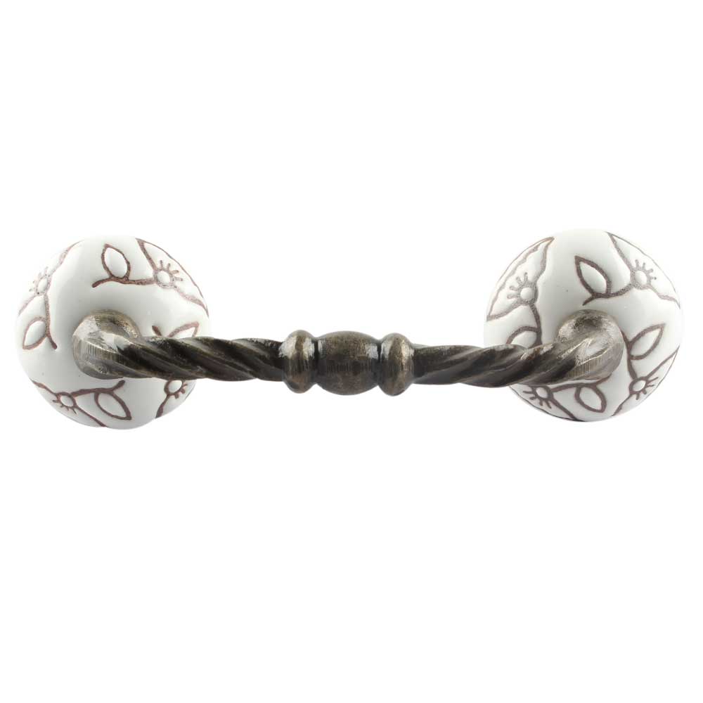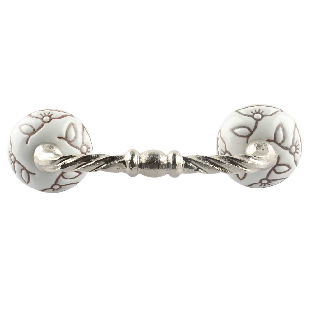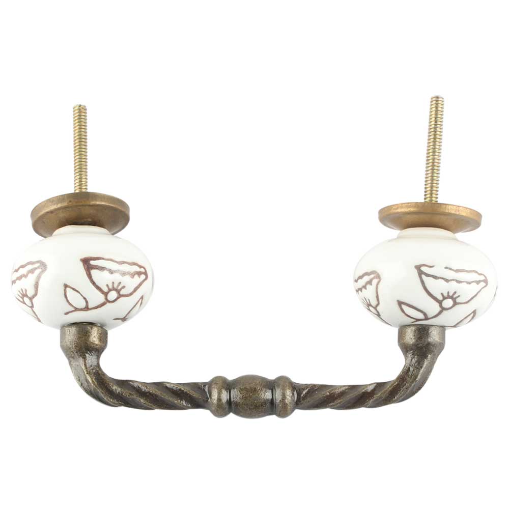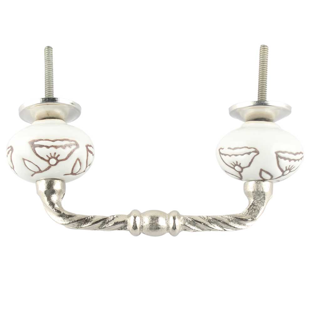 White Calla Lily Etched Ceramic Cut Bridge Handle. Ideal for Drawer, Dresser, Cabinet, Wardrobe, Cupboard and Almirah etc.
