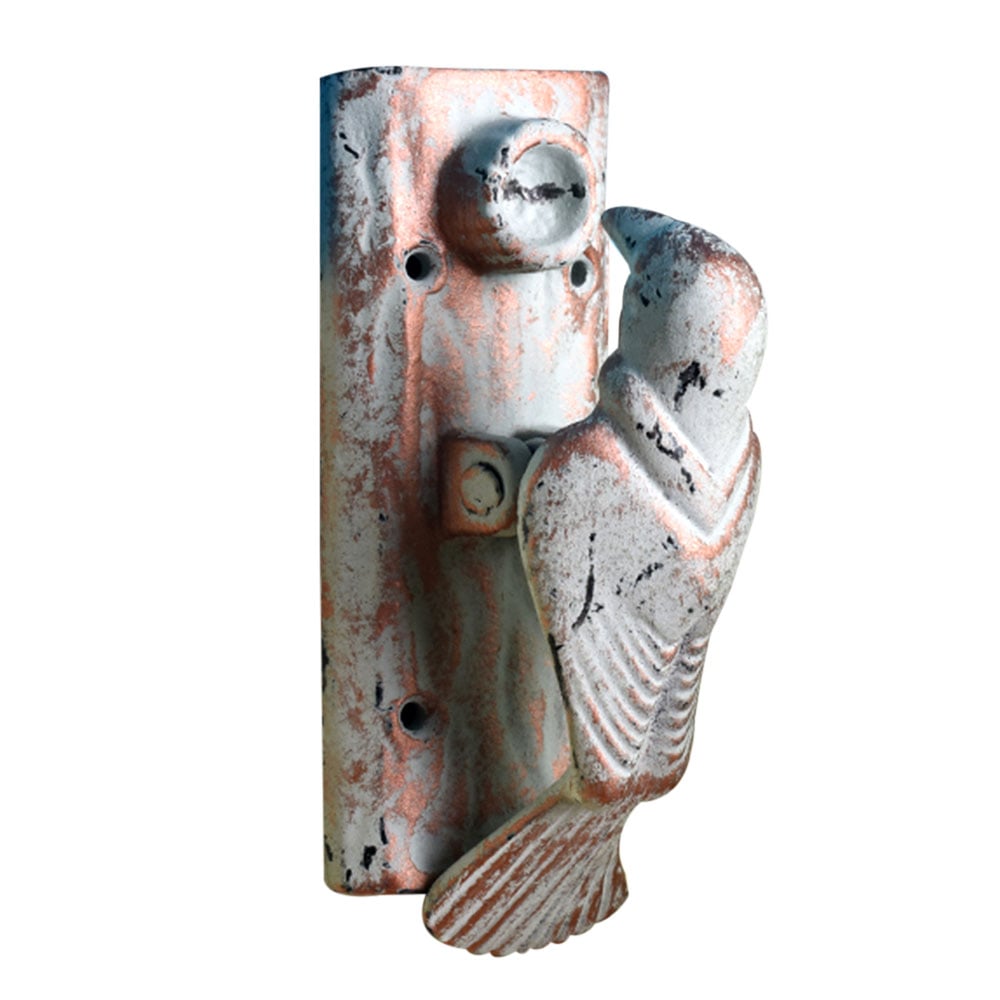 Indianshelf.com for bulk/wholesale orders.Indianshelf.us for personal purchases.Add a whimsical and rustic touch to your front door with the White Cast Iron Woodpecker Bird Door Knocker. Crafted from durable cast iron and finished in a clean, white color, this delightful bird-shaped knocker features intricate detailing, capturing the character of a woodpecker mid-action. A perfect blend of functionality and charm, this door knocker is ideal for anyone looking to make a lasting impression on their guests.