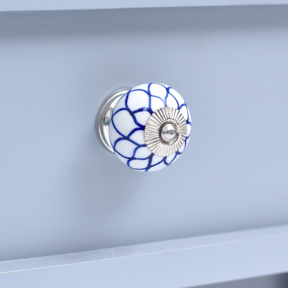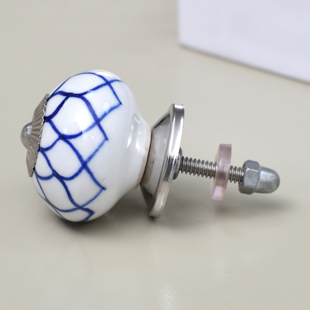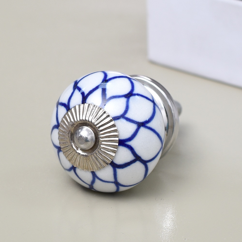 Enhance the aesthetic of your furniture with our exquisite Ceramic Round Knob in a pristine white and blue finish. This stunning knob is not just a functional piece but also a work of art, handcrafted by skilled Indian artisans who have honed their craft for generations. The intricate flower design adds a touch of elegance and charm to any drawer, dresser, cabinet, wardrobe, cupboard, or almirah. Our Ceramic knob is the epitome of luxury and craftsmanship, making it the perfect choice for both residential and commercial spaces. It's not just handles for cabinets and drawers, it's a statement of your impeccable taste. Whether you're looking to upgrade your kitchen handles for cabinets or add a touch of opulence to your office, hotel, cafe, or shop, this knob is the ideal choice. Moreover, it's an ideal gift for your loved ones on special or festive occasions. Show them you care by gifting them a piece of Indian craftsmanship that exudes beauty and sophistication.