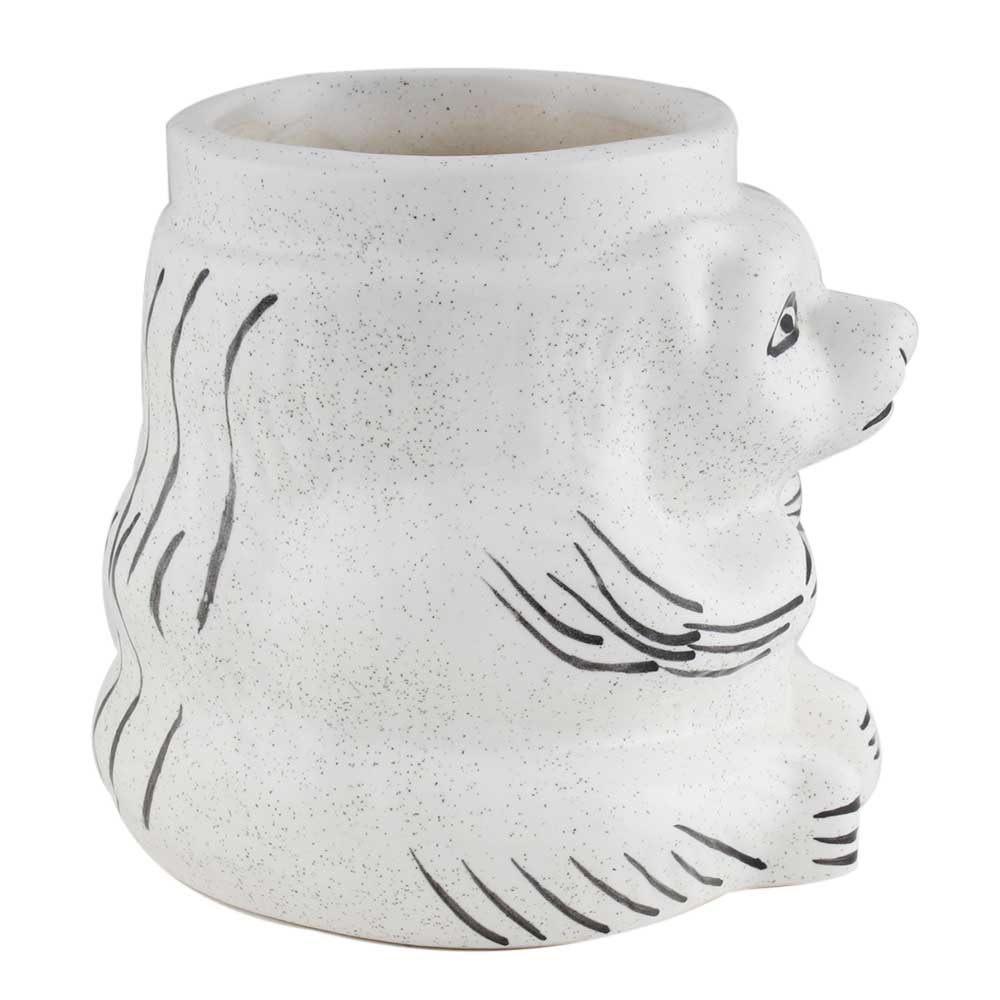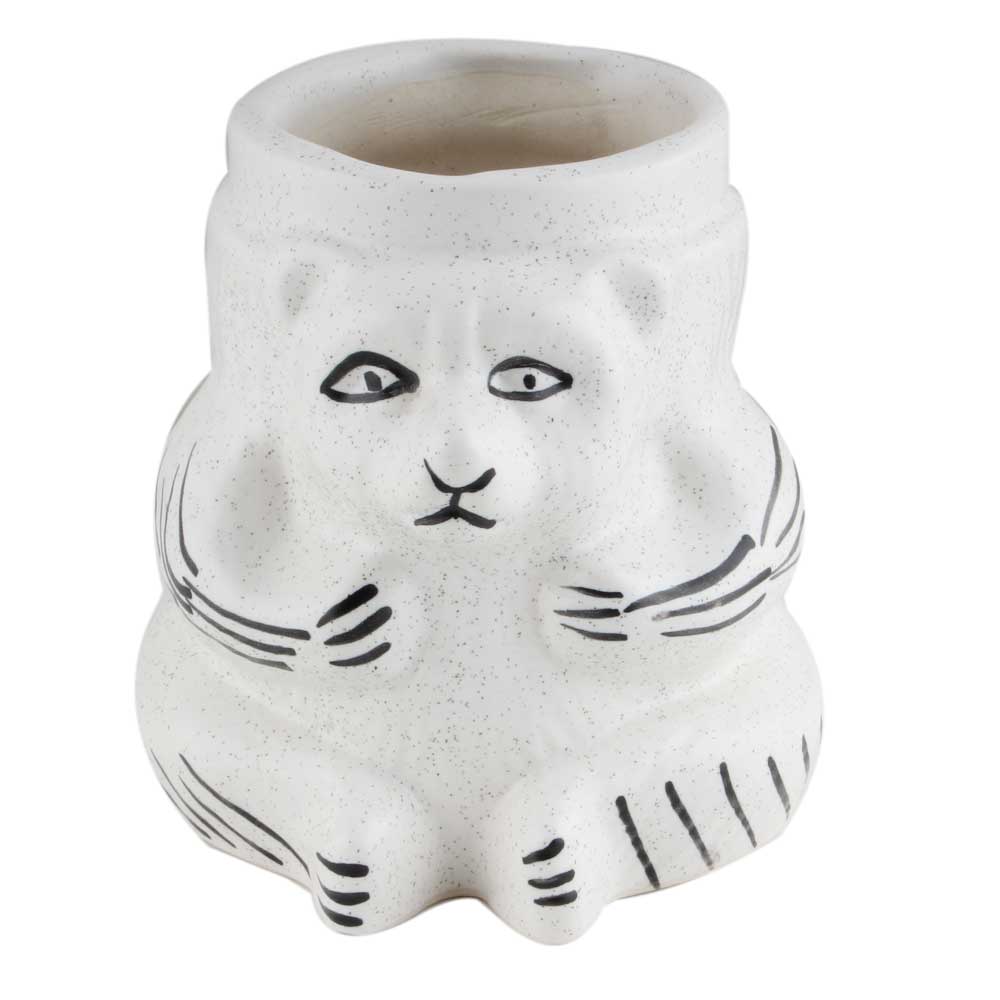 • White Ceramic Hand Painted Lion Face Flower Pot