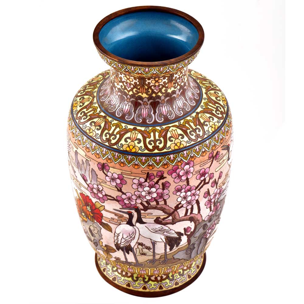 • White Cloisonne Enameled  Vase White with Birds and Flowers