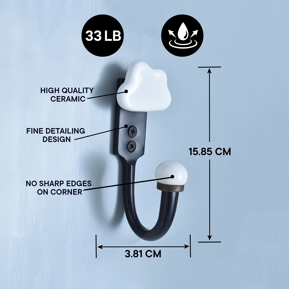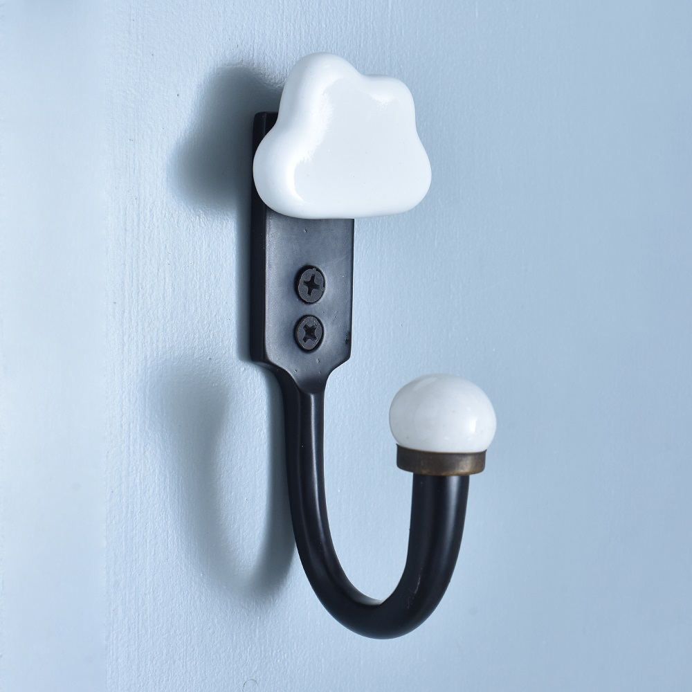 Soft in appearance but strong in performance, the White Cloud Ceramic and Zinc Hook is a charming, handcrafted wall hook designed to bring a whimsical touch to your child’s space—or any room needing a little joy. Shaped like a fluffy white cloud and made from high-quality ceramic, it’s mounted on a durable zinc base for secure, everyday use. Whether you’re organizing a nursery, playroom, or entryway, this hook blends creativity with practical function.