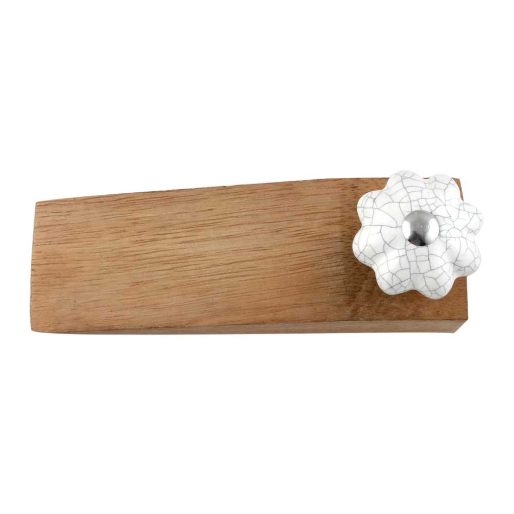 Handmade Ceramic and Wooden Door Stopper.Wooden Door Stopper with a Ceramic Knob to Carry it Easily. This Wooden Door Stopper has Glue Dots under it to Ensure that it does not Slip. It is Handmade by the Craftsmen of India and this Innovative Door Stopper won't Disappoint You.