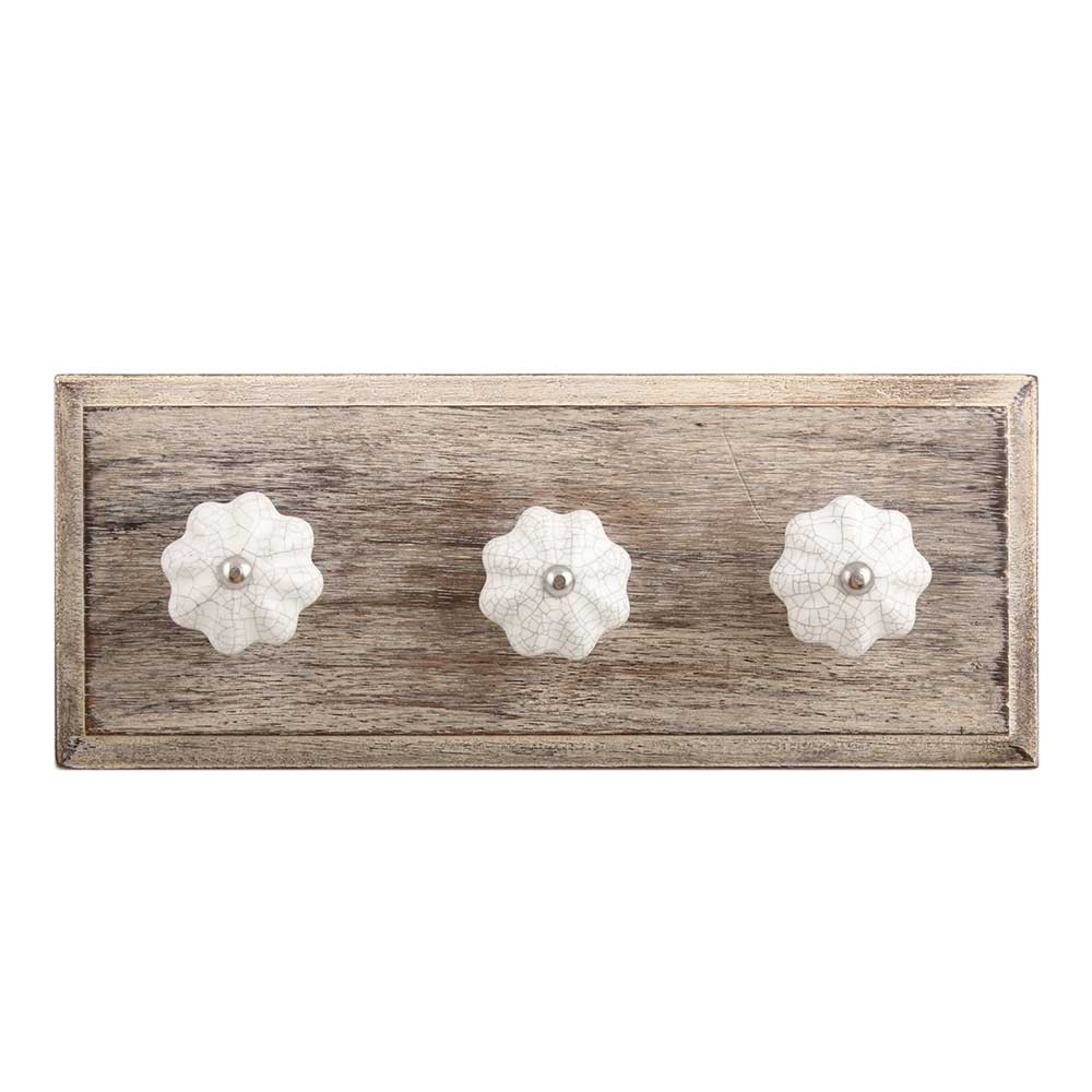 White Crackle Ceramic Melon Wooden Hook. A Perfect Complement to the Soft Tone of the Wood are these White Traditional Hat Coat Hook Made of Genuine Porcelain and Brass. It can be use to Hang Jewellery, Leashes, Towels, Scarves, Light Weight Sweaters, Caps Etc.