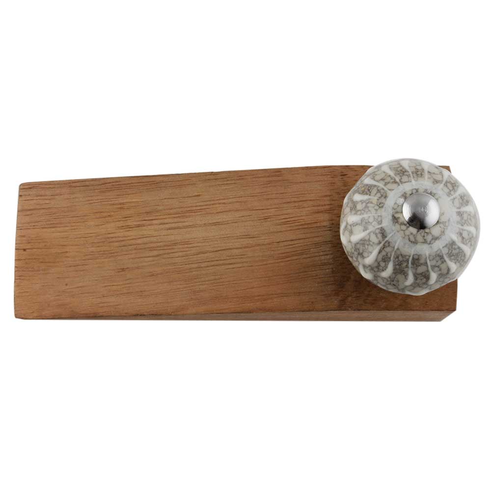 Handmade Ceramic and Wooden Door Stopper.Wooden Door Stopper with a Ceramic Knob to Carry it Easily. This Wooden Door Stopper has Glue Dots under it to Ensure that it does not Slip. It is Handmade by the Craftsmen of India and this Innovative Door Stopper won't Disappoint You.