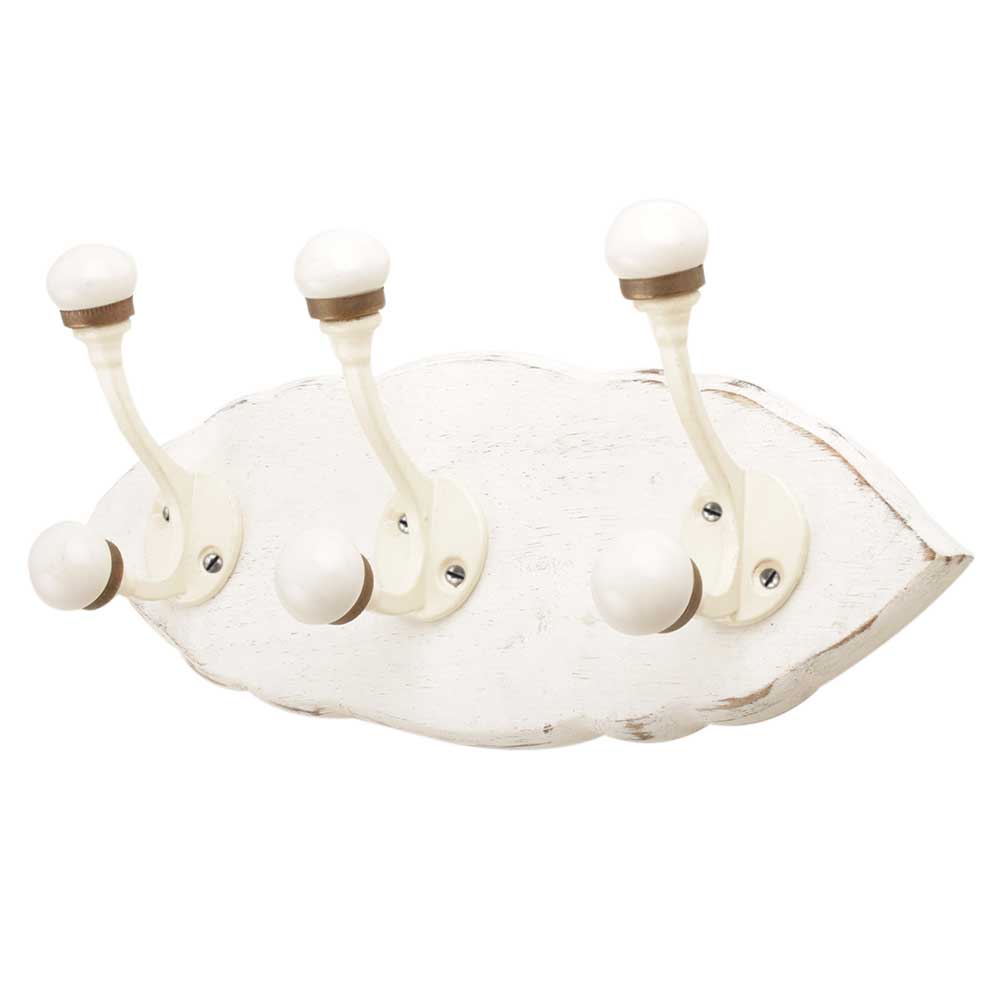 White Cream Double Loop Ceramic Iron Wooden Hooks. A Perfect Complement to the Soft Tone of the Wood are these White Traditional Hat & Coat Hook Made of Genuine Porcelain and Brass. It can be use to Hang Jewellery, Leashes, Towels, Scarves, Light Weight Sweaters, Caps Etc.