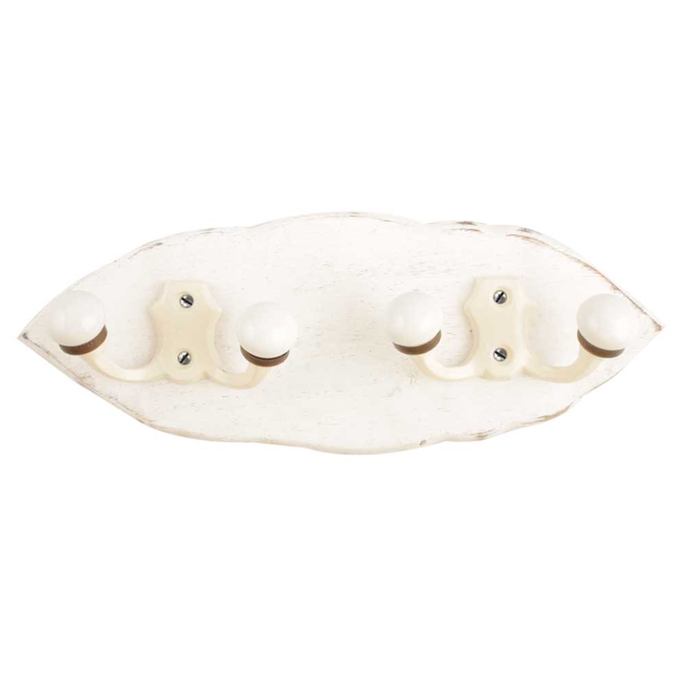 White Cream Double Loop Ceramic Iron Wooden Hooks
