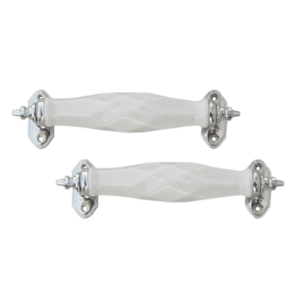 White Cut Ceramic Handle. Ideal for Drawer, Dresser, Cabinet, Wardrobe, Cupboard and Almirah.