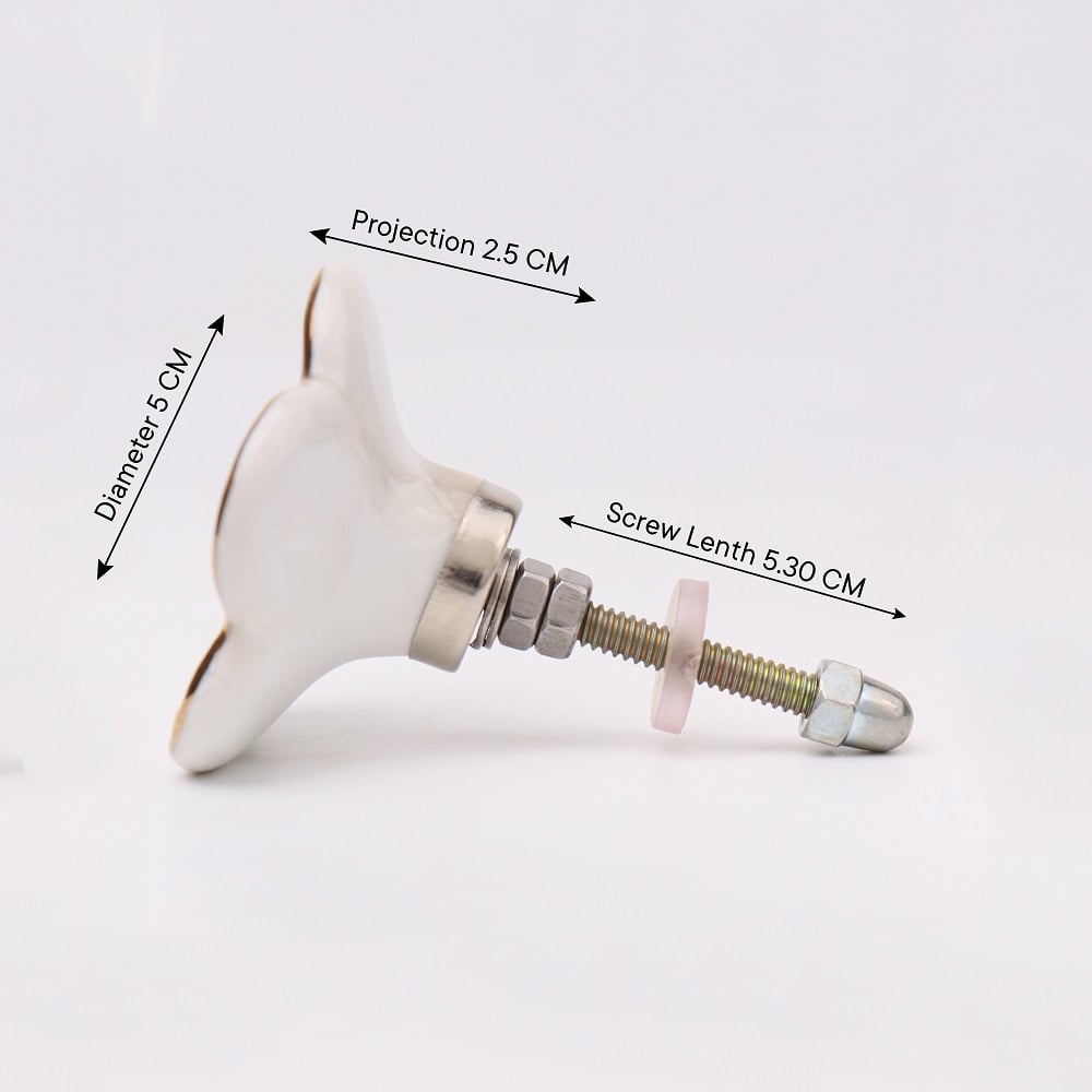 • White Daffodils Ceramic Cabinet Knob With Gold Work