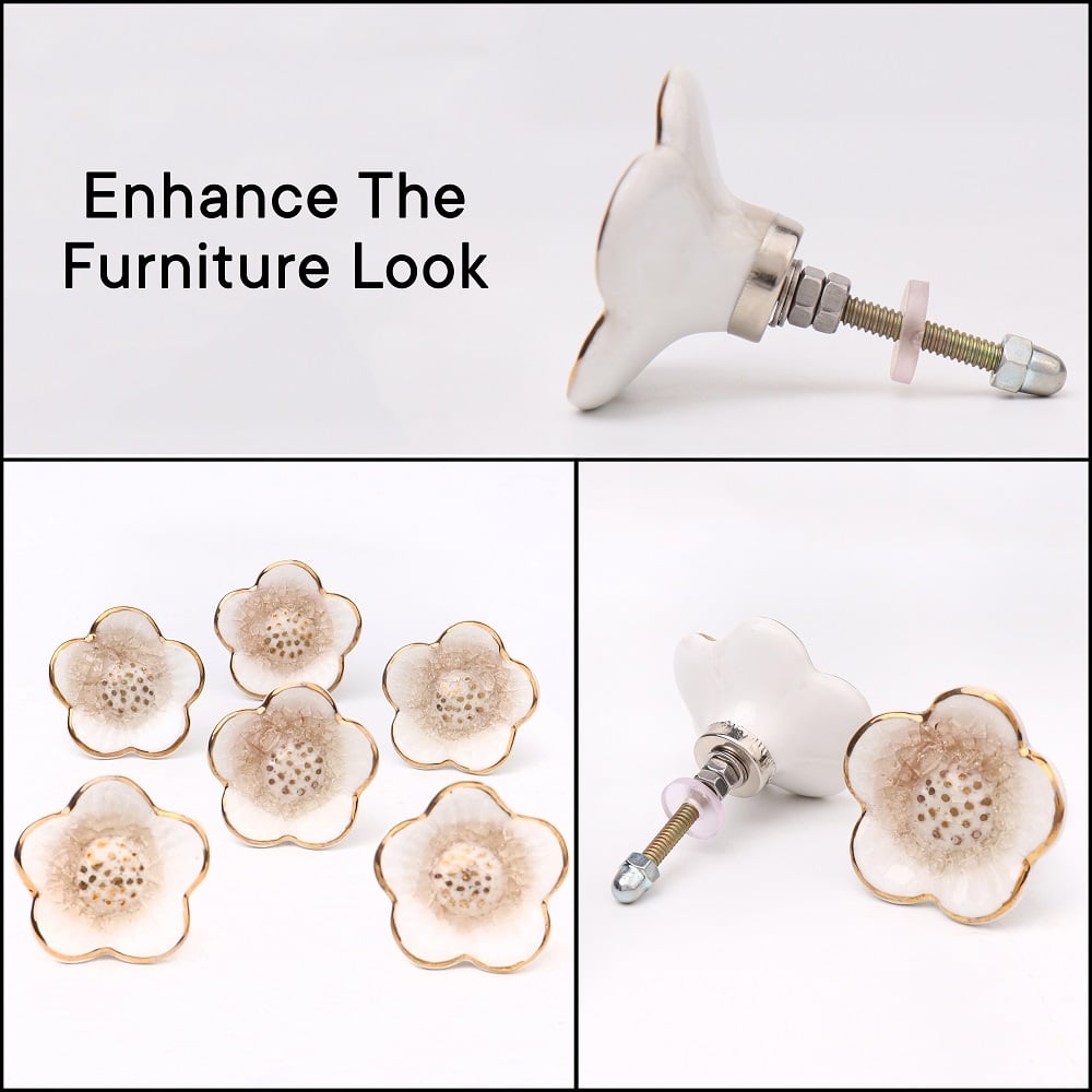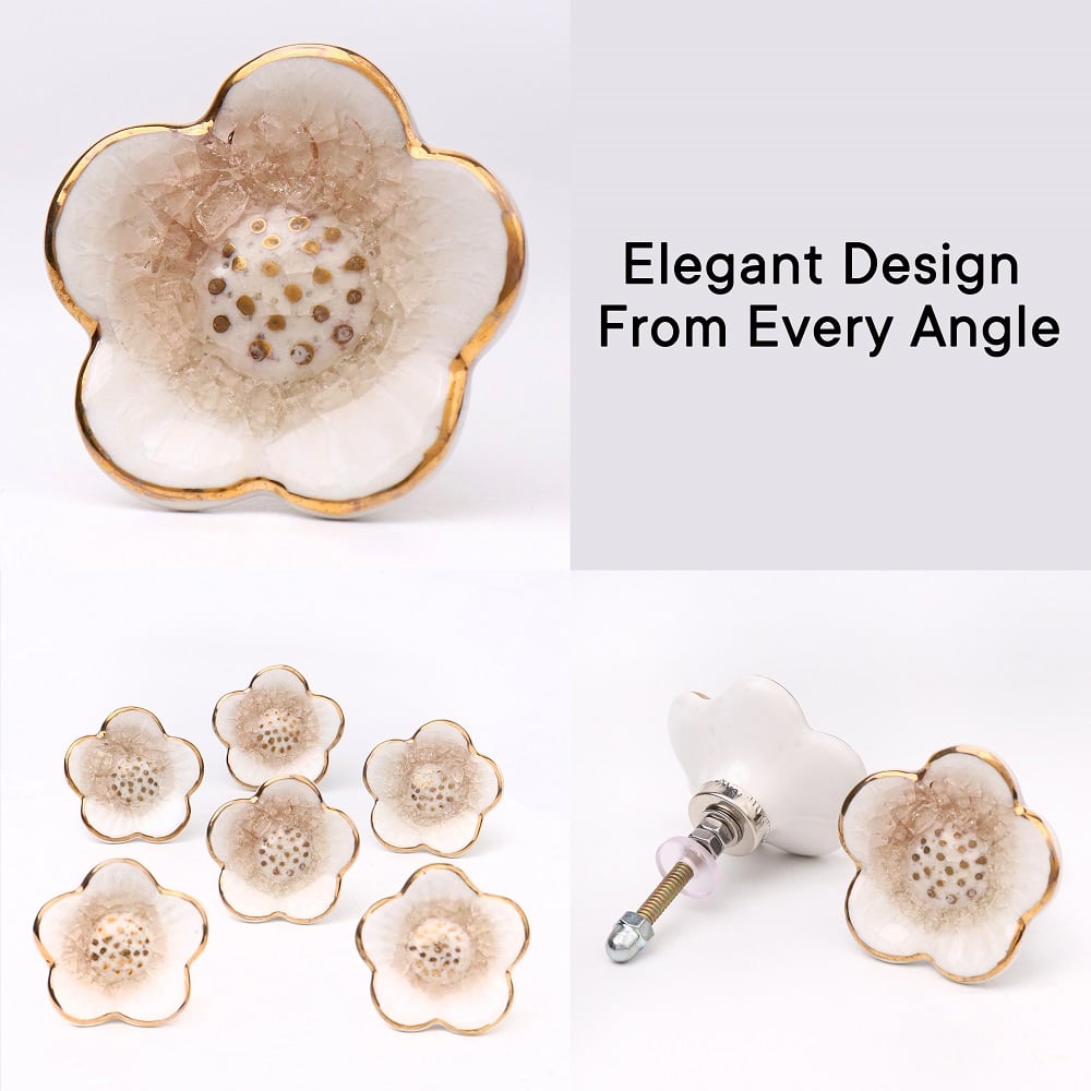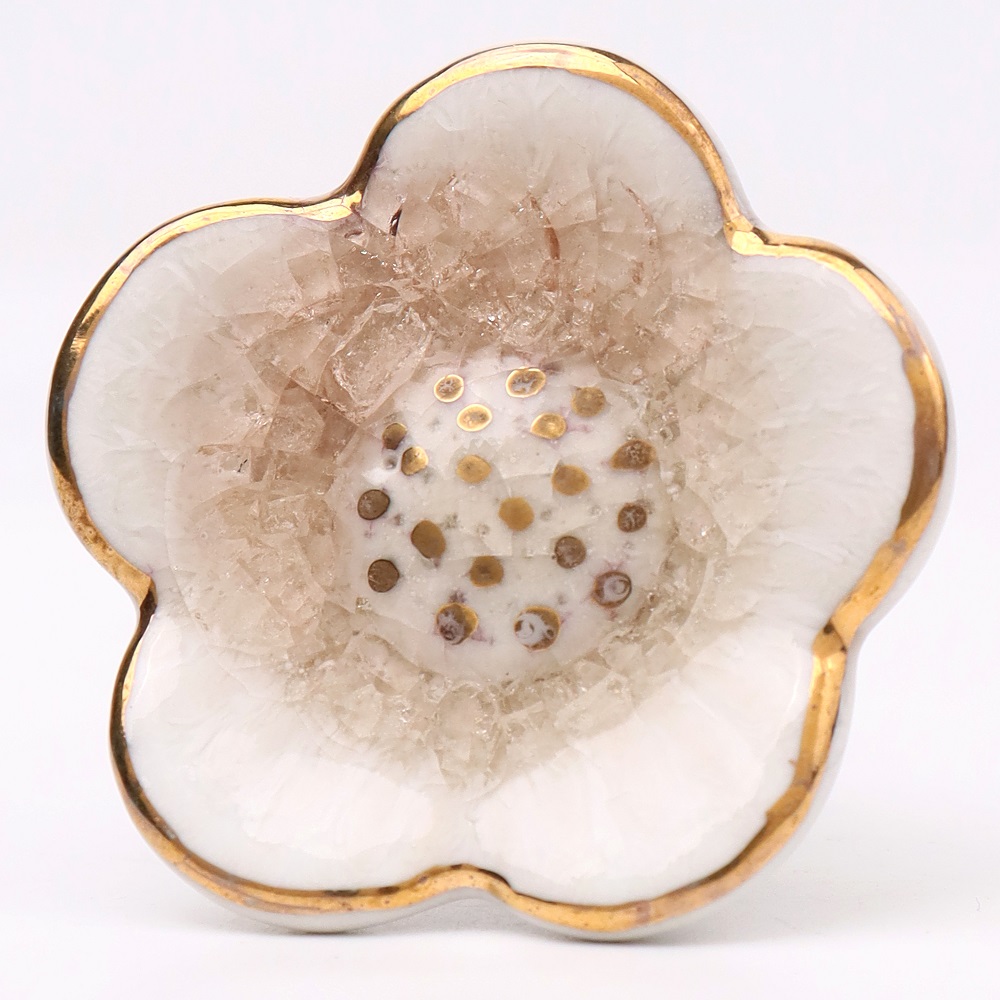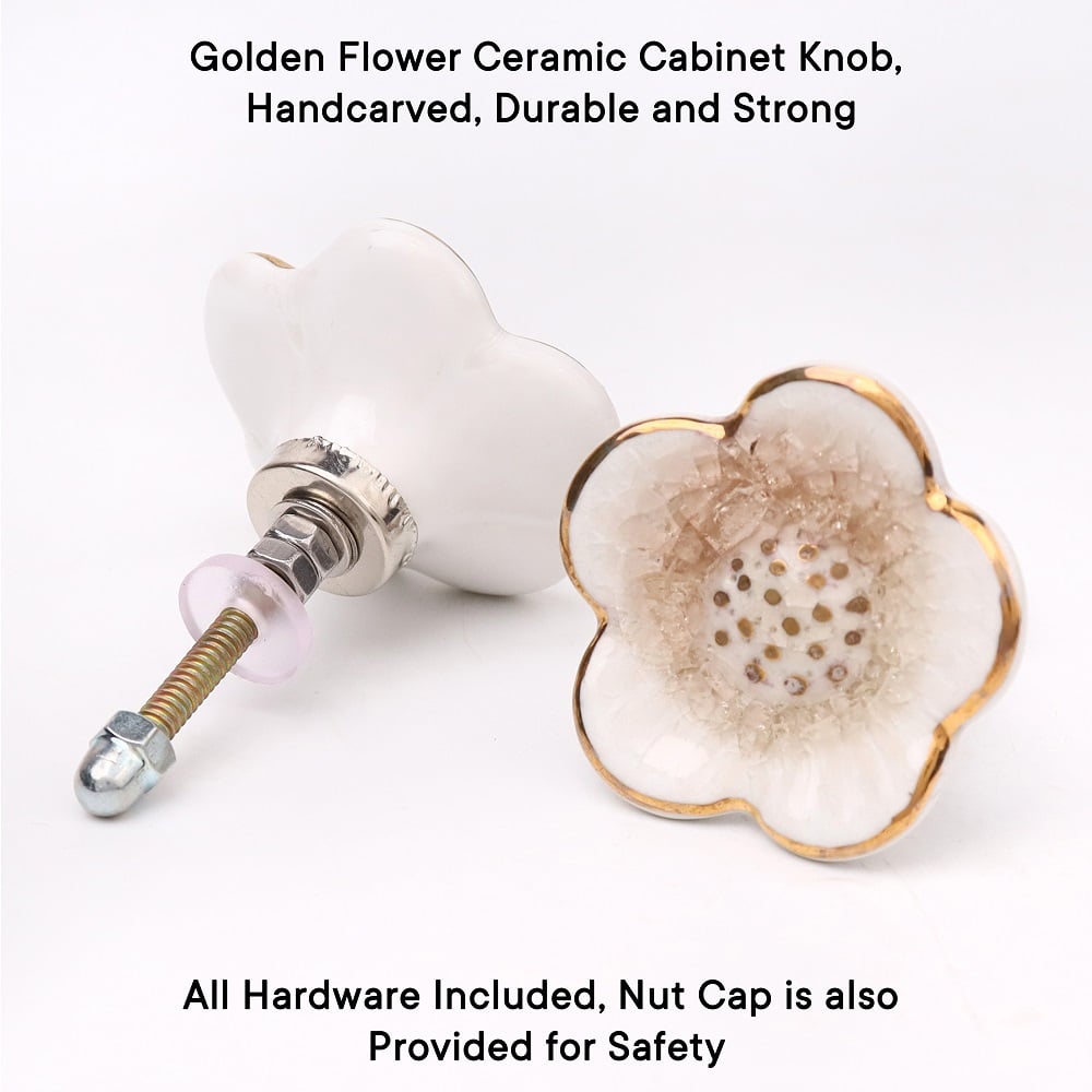 White Daffodils Ceramic Cabinet Knob With Gold Work