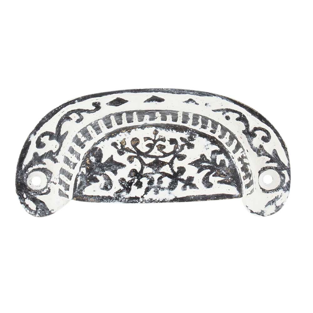 Crafted from durable iron, the handle ensures reliable functionality while maintaining its vintage appearance. The distressed white finish, combined with the iron construction, provides durability that will last for years.
