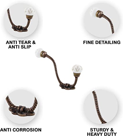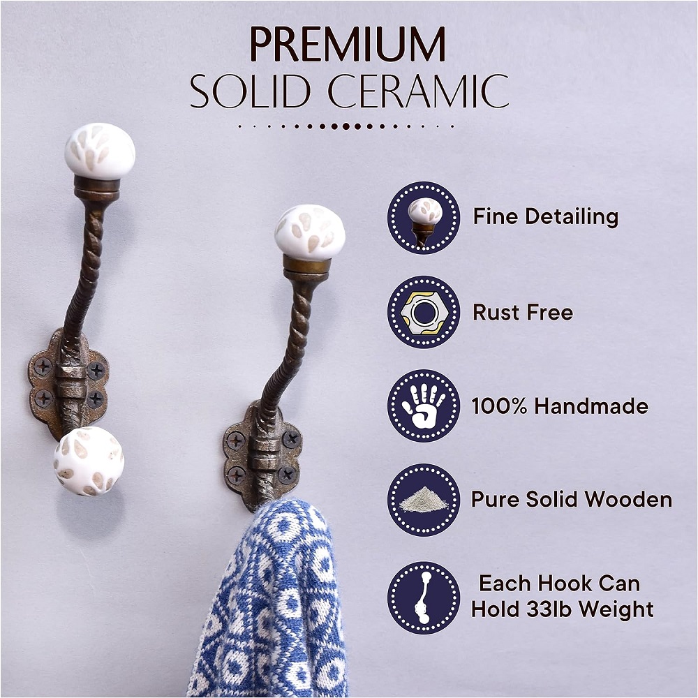 White Etched Ceramic Floral Iron Hook-Ehg-93. When Put on Wall or Cabinet It Gives A Sturdy Look. This Hook is Strong Enough to Hold Your Cloths, Keys, Tea Cups, Coffee Mugs, Hand Towels Etc. Etc.